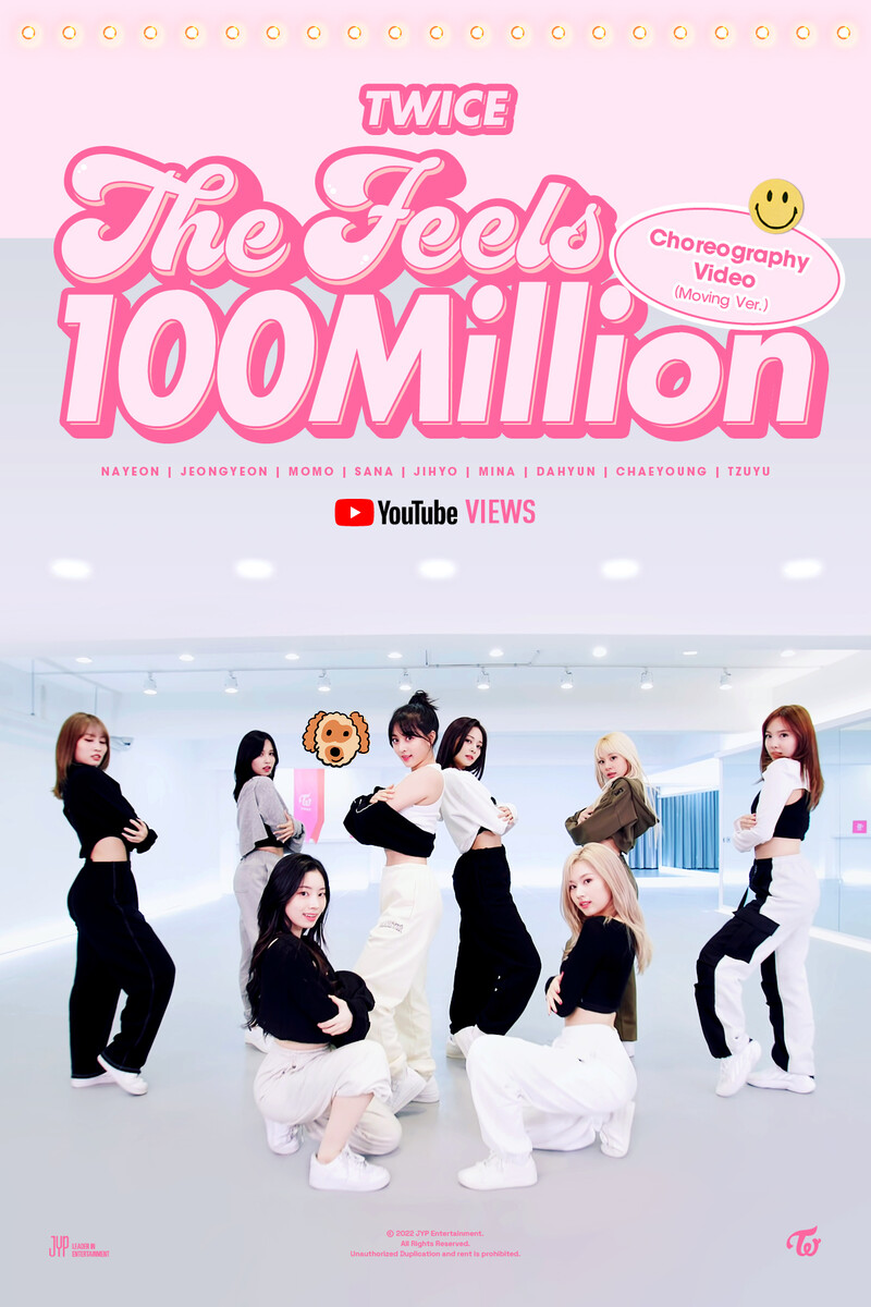 | ▲This photo, provided by JYP shows, celebrative poster for dance video of 'The Feels' exceeding over 100 million views on YoutTube. (PHOTO NOT FOR SALE) (Yonhap) |