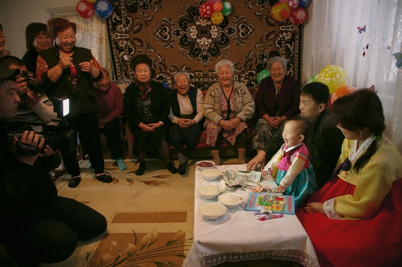 | ▲This photo, provided by The National Folk Museum of Korea, shows Uzbekistan Koreans celebrating the 100th day of birth. (PHOTO NOT FOR SALE) (Yonhap) |