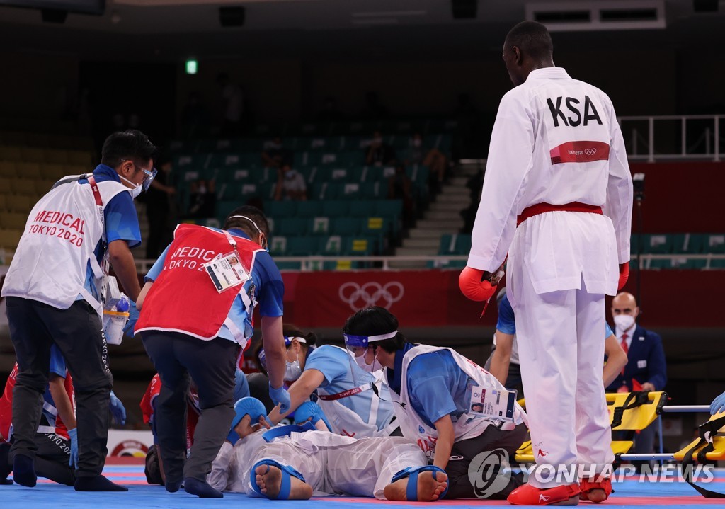 (서울=연합뉴스) 신창용 기자 = 2020 도쿄올림픽에서 처음으로 올림픽에 데뷔한 가라테 종목의 마지막 경기가 다소 황당하게 끝이 났다.