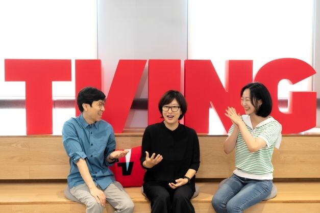 | ▲ This photo, provided by Tving, shows director Lee Sang-yeob, writer Song Jae-jeong and Kim Kyung-ran. (PHOTO NOT FOR SALE) (Yonhap) |
