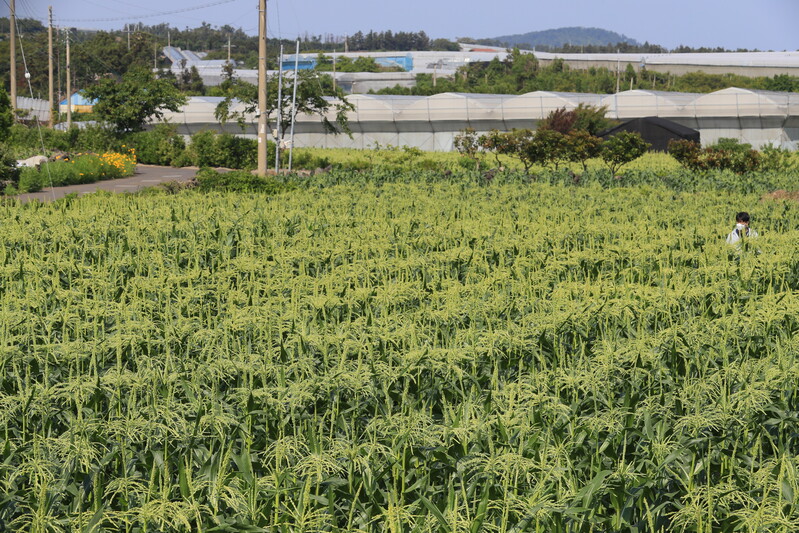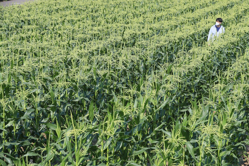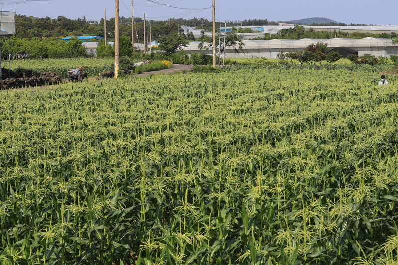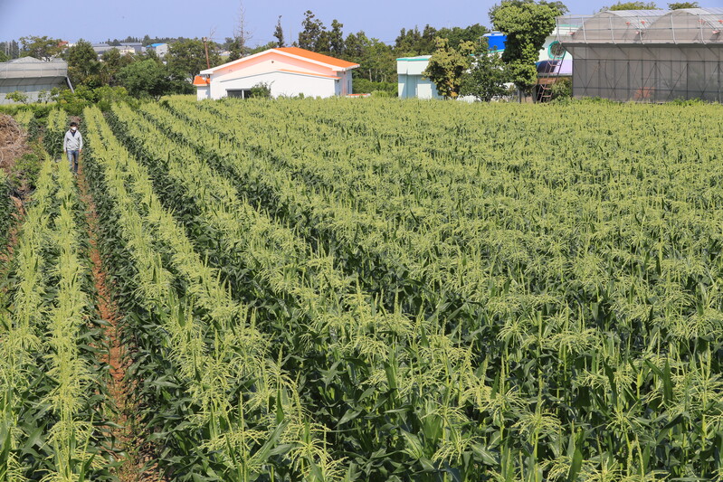 Chodang corns, which are about to be harvested, are getting ripe in a field, Susan-ri, Aewol-eup, Jeju, on May 18, 2022. (Yonhap)