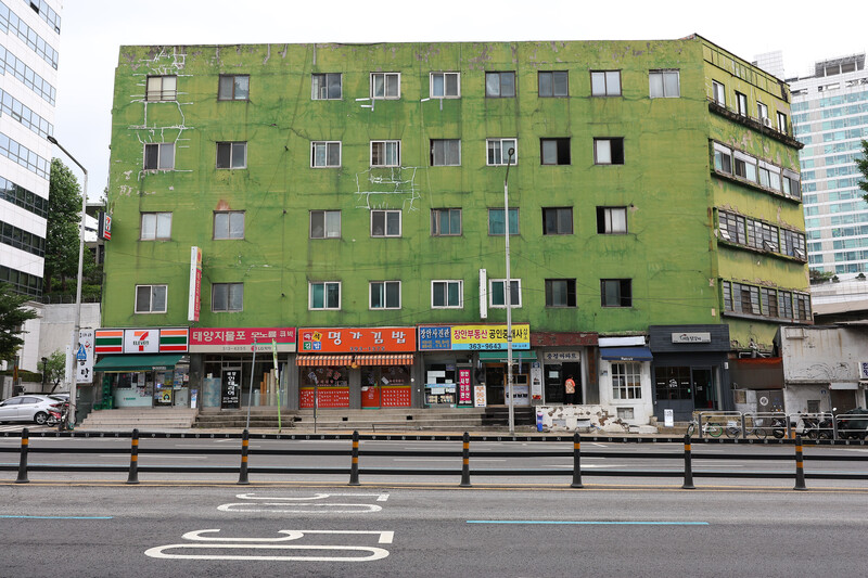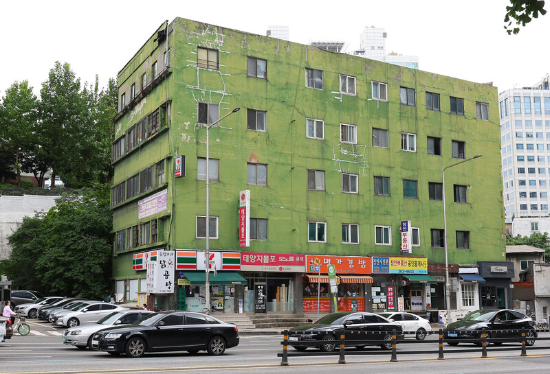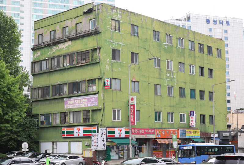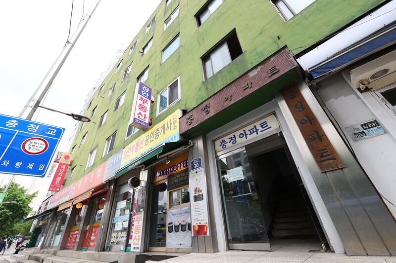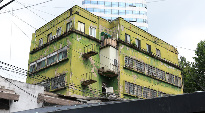 These photos taken on June 16, 2022, show Chungjeong Apartment Building in Seoul's Mapo Ward, which was dedicated in 1937 and is the oldest apartment building in South Korea. The Seoul metropolitan government decided the previous day to demolish the building due to safety concerns. (Yonhap)