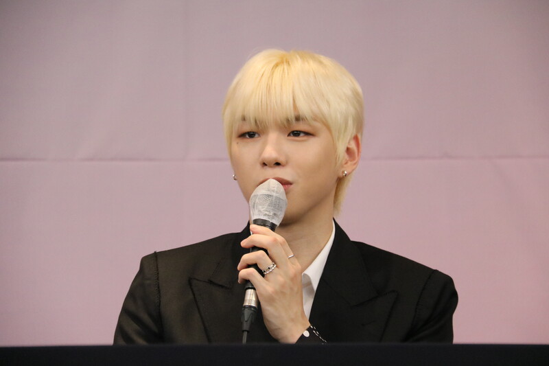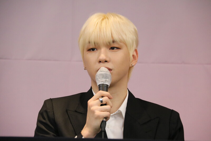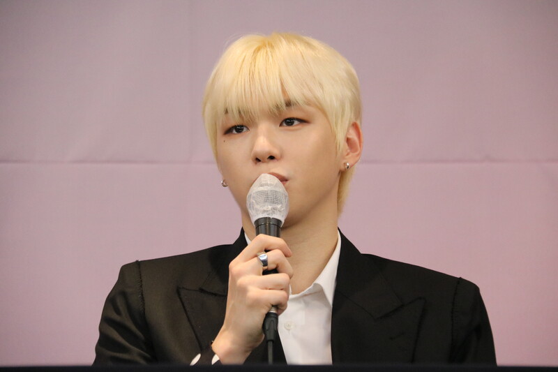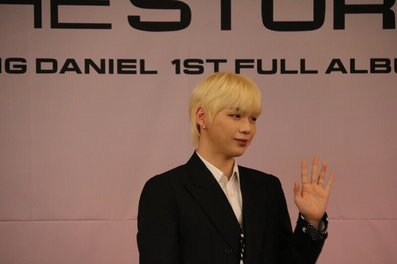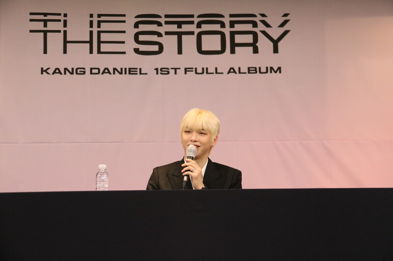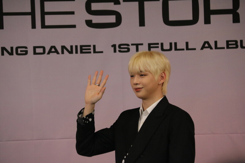 These file photos, show singer Kang Daniel at a press conference on May 24th, 2022, to celebrate his first full album "The Story." (K-Odyssey)