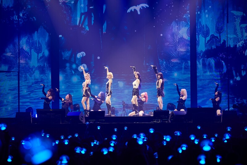 These photos, provided by SM Entertainment, show photos of aespa members during fan meeting "MY SYNK aespa" held at SK Olympic Handball Stadium in Seoul on July 30 at 6 p.m.