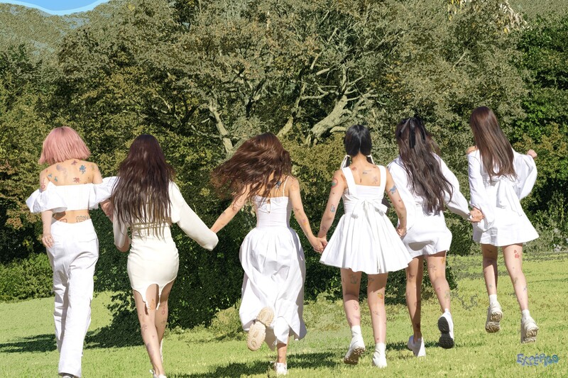 These photo, provided by the JYP Entertainment show group photos of K-pop girl group NMIXX for their upcoming first mini album "expérgo" which is expected to drop on March 20 at 6 p.m. (KST)