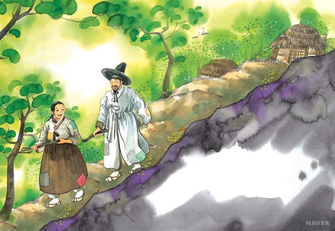 | ▲ This photo provided by Naver shows an illustration of Shim-cheong leading her blind father. |