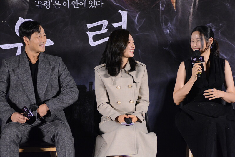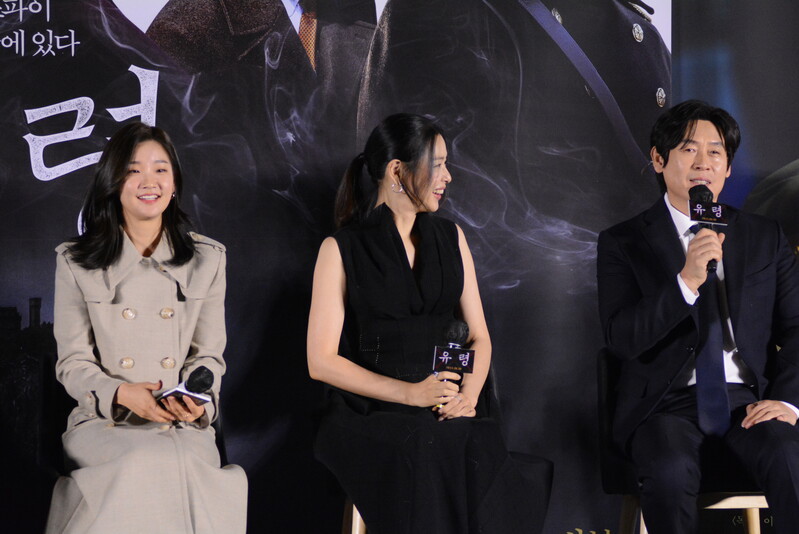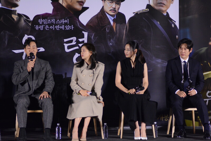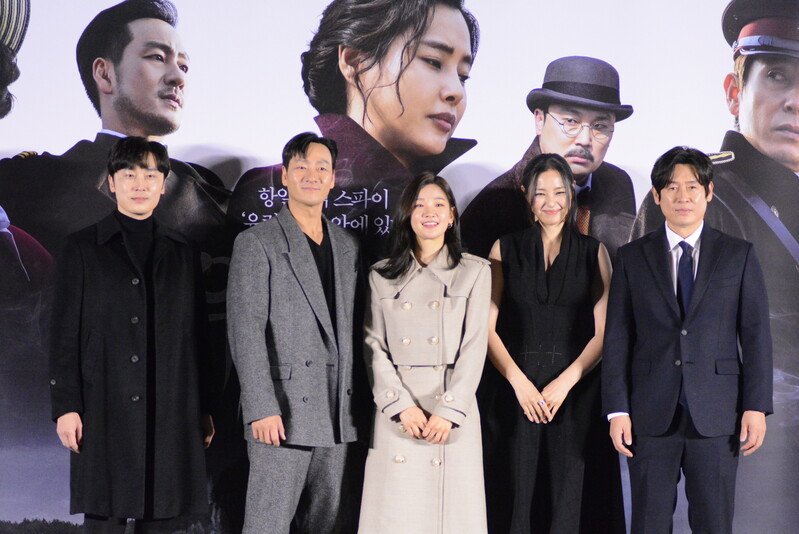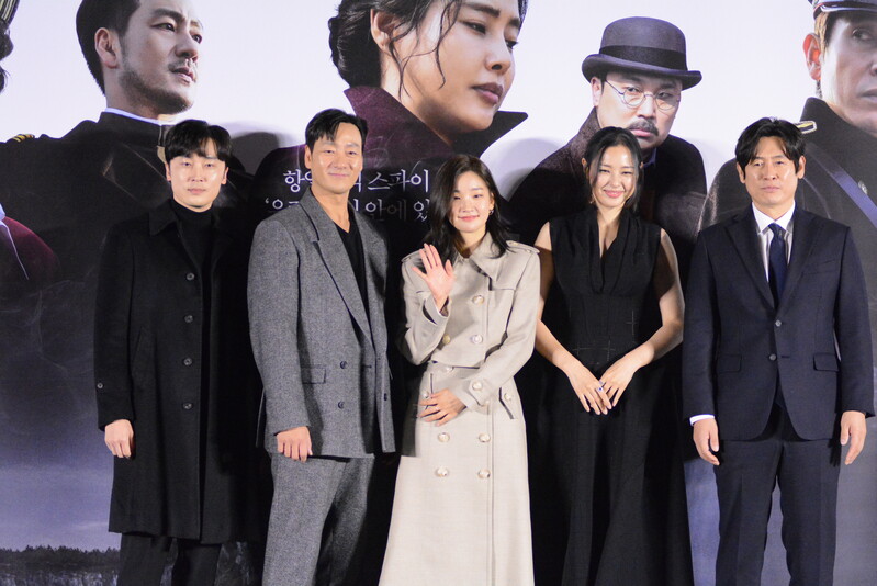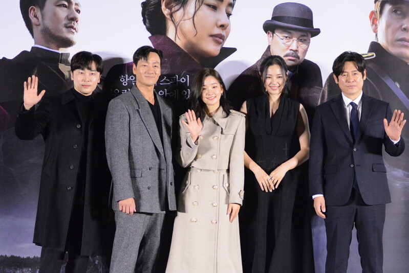 These photos, taken during the press conference of upcoming South Korean movie "Phantom" show actor Sol Kyung-gu, Park Hae-soo, Seo Hyun-woo, actress Park So-dam, Lee Hanee posing for their individual, group photos and answering to questions.