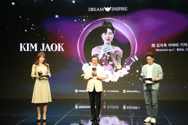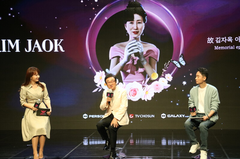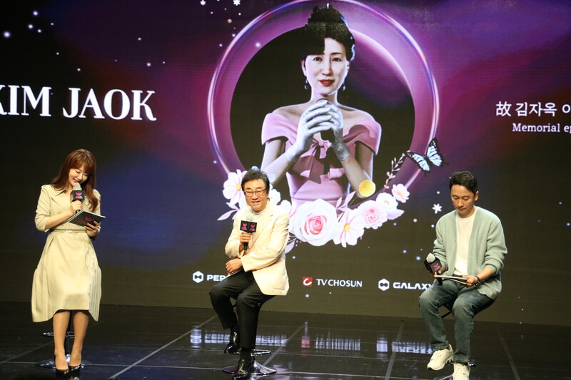 These photos taken during the press conference of South Korean TV show Ava Dream shows, where they recreate loved actors and singers who has passed away in an AI form, showed an AI version of South Korean Actress Kim Jaok who has passed away 8 years ago and showcased a duet stage with her husband Oh Seung-geun.