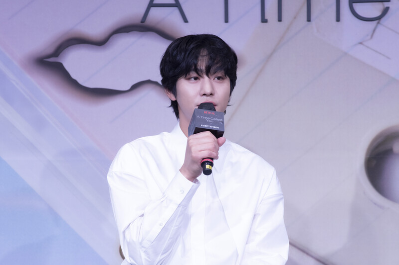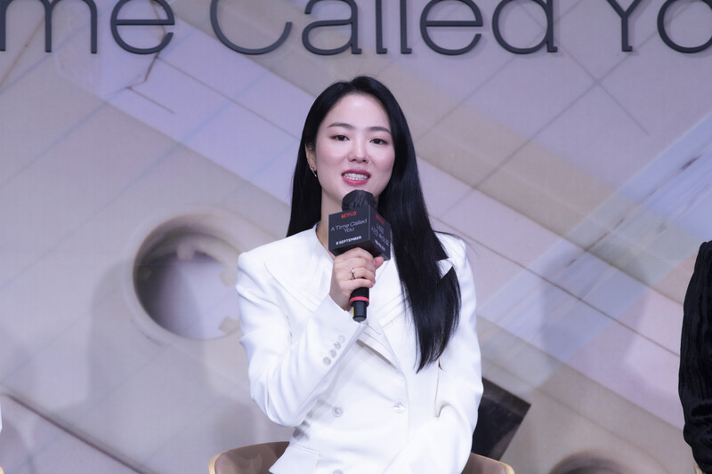These photos, taken during the press conference of Netflix's "A Time Called You" show cast members posing for their individual and group photos and answering questions throughout the event.