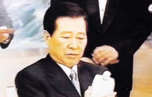 | ▲ President Kim Dae-jung looking at Munbae-ju during the 2000 inter-Korean summit - Photo source: National Research Institute of Cultural Heritage |