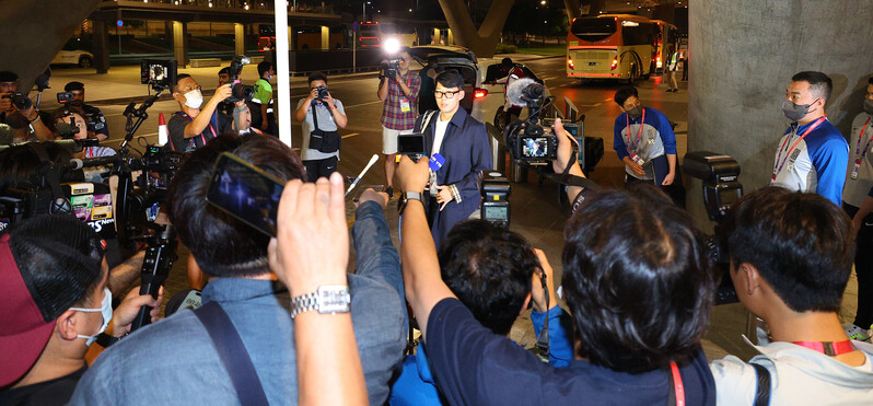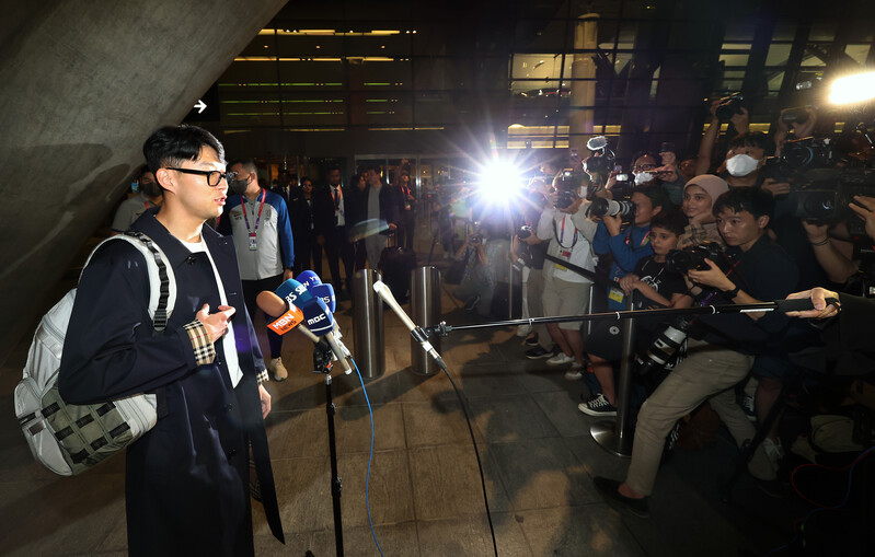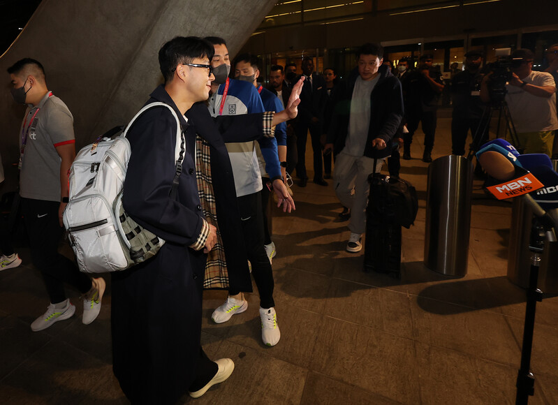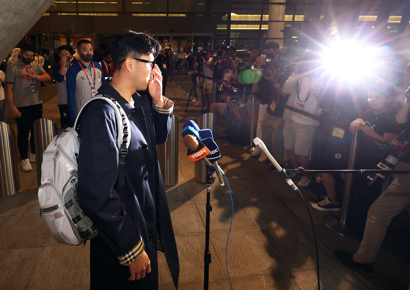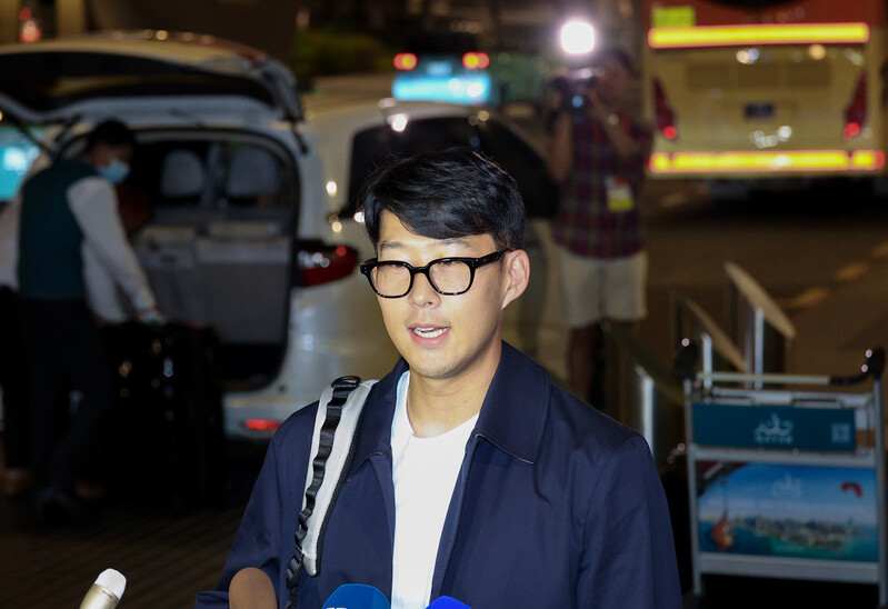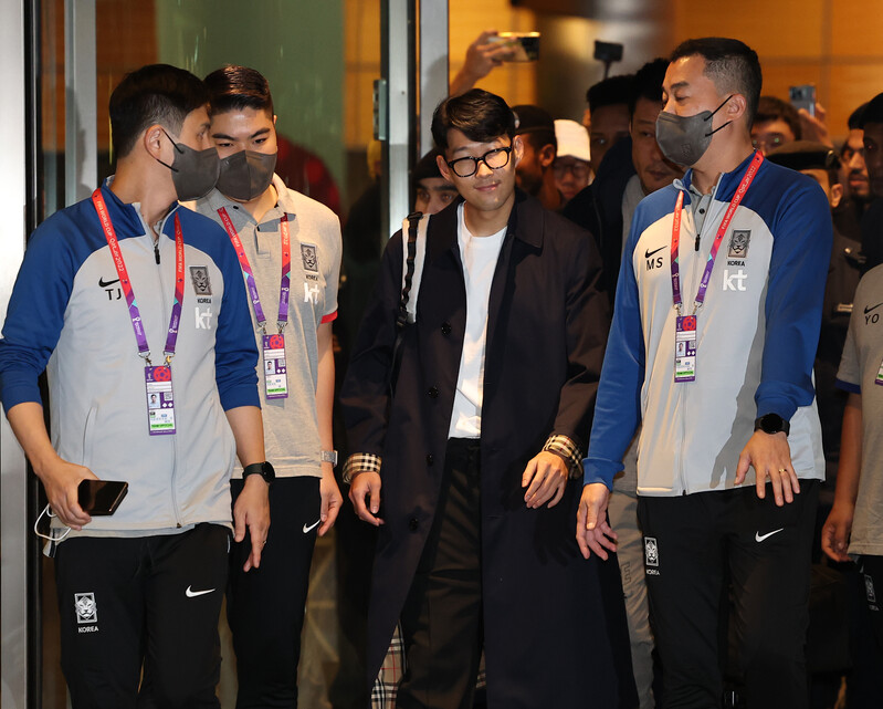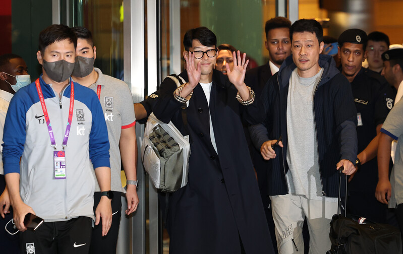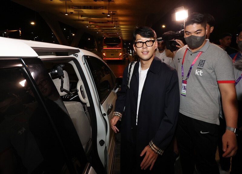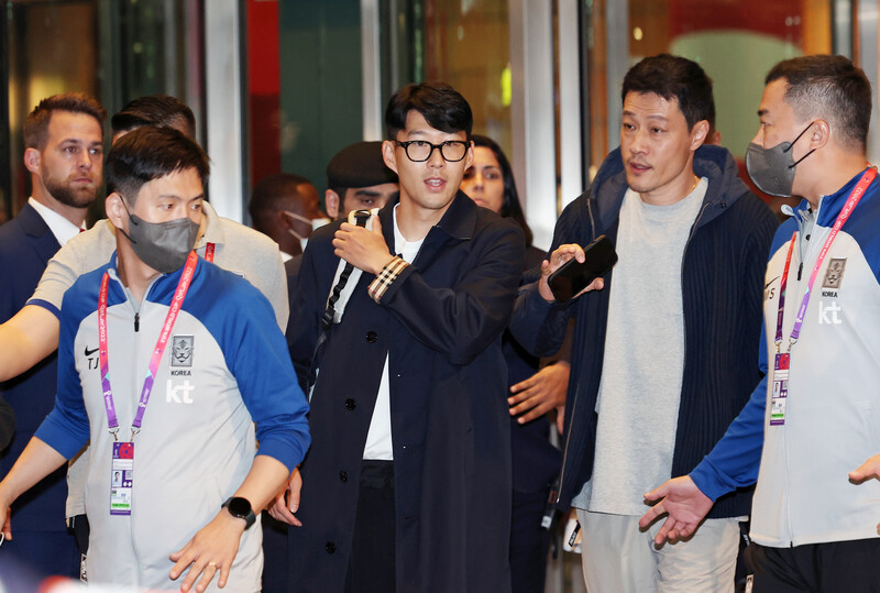South Korea's Son Heung-min arrives at Hamad International Airport in Doha, Qatar, on Nov. 16, 2022, for the 2022 FIFA World Cup. (Yonhap)
