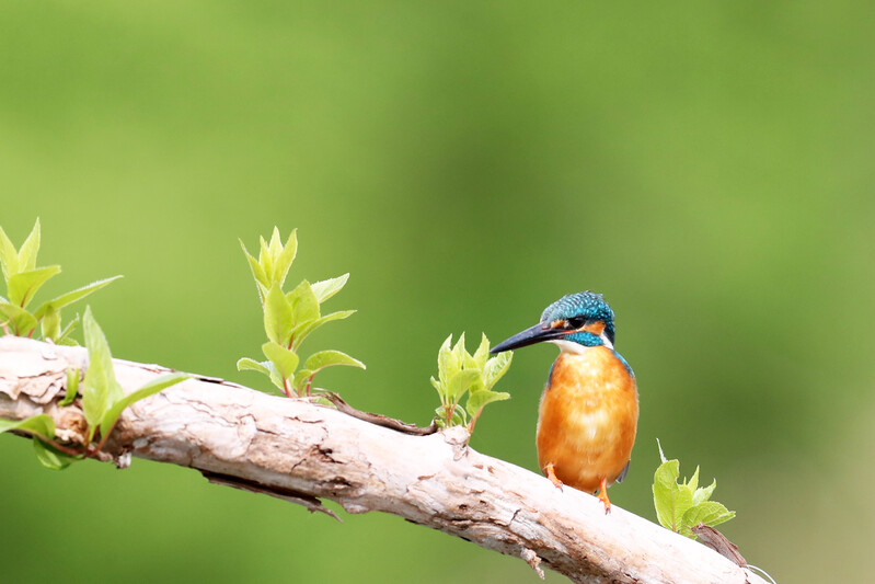 A kingfisher is aiming for a fish to hunt in downtown Pohang, Gyeongsangbuk-do.
