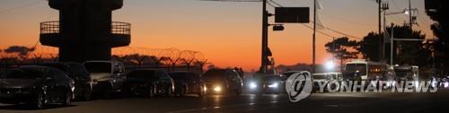 | ▲ 새해 첫 일출 기다리는 관광객 (강릉=연합뉴스) 이해용 기자 = 2021년 새해 첫날인 1일 아침 강원 강릉시 경포해변 인근에 해맞이 관광객이 타고 온 차량이 줄지어 서 있다. |