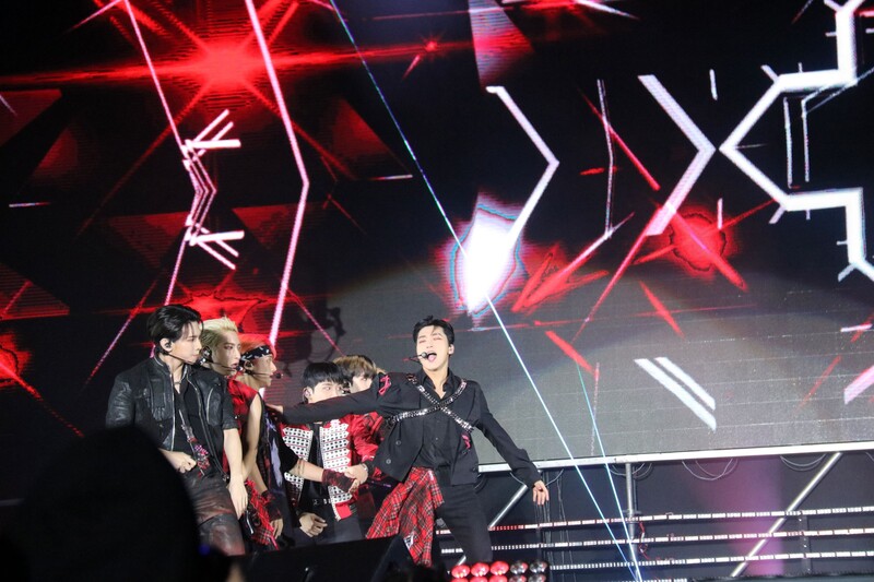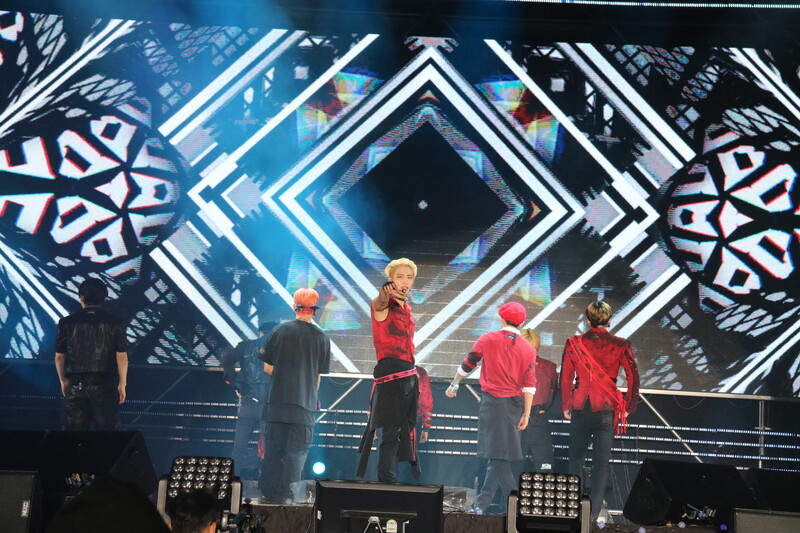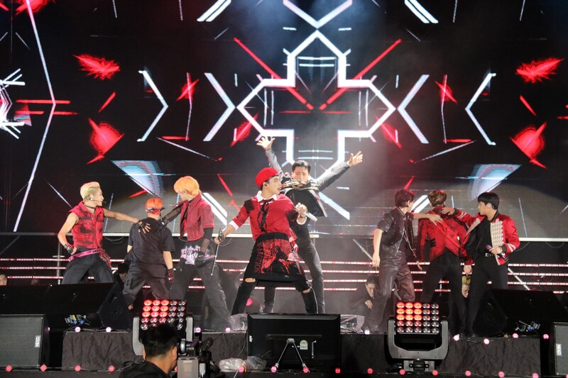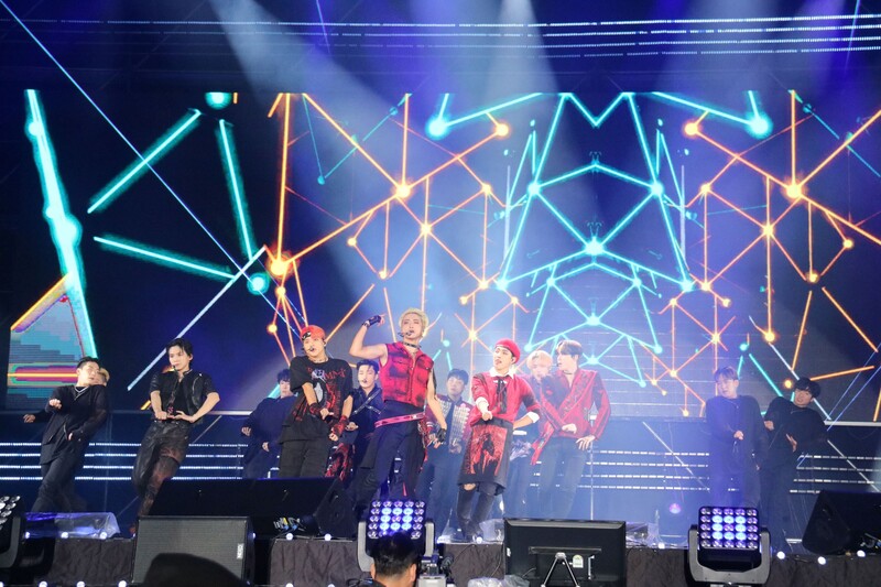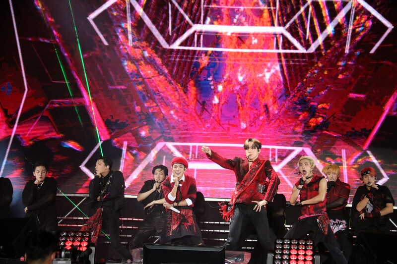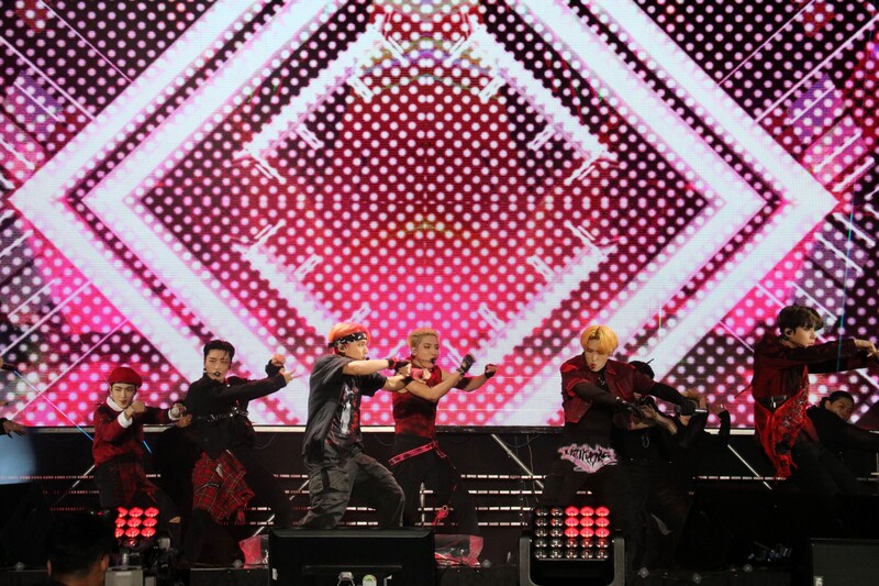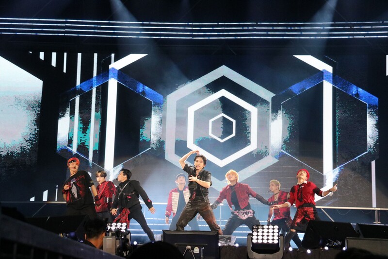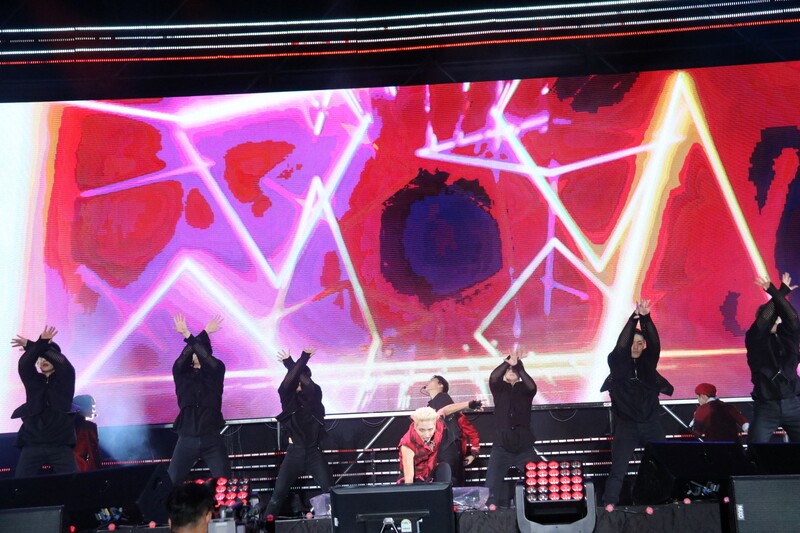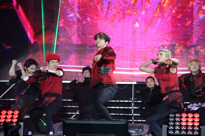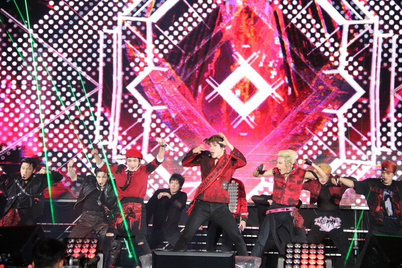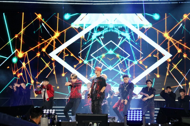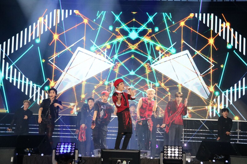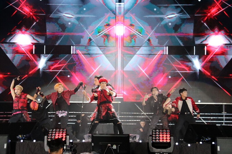 These photos show K-POP boy group ATEEZ during the "Powerful Daegu K-pop Concert" which was held at Kyungpook National University in Daegu on October 9.