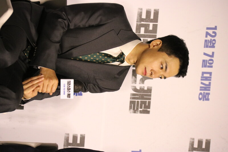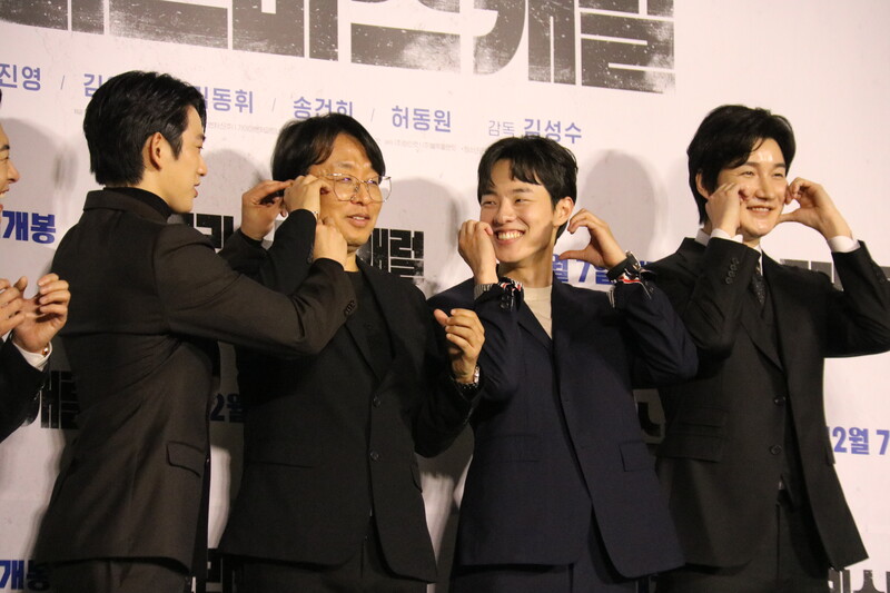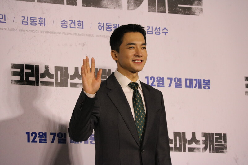 These photos show the cast of the movie "Christmas Carol" which will be released in December. Actors Park Jin-young, Kim Young-min, Kim Dong-hwi, Heo Dong-won, and Song Geon-hee participated the press conference.