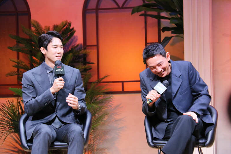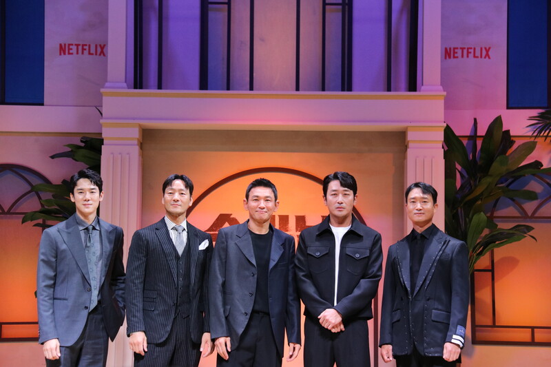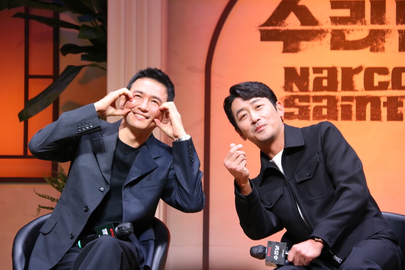 These photos show the press conference of the new Netflix Action-Thriller Series "NarcoSaints" (Suriname)', which was held at the Joseon Palace Hotel in Seoul, Korea on Wednesday. The series stars actors Ha Jung-woo, Hwang Jung-min, Park Hae-soo, Yoo Yeon-seok, and Jo Woo-jin, and it will be released on September 9 on Netflix.