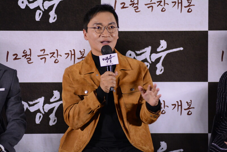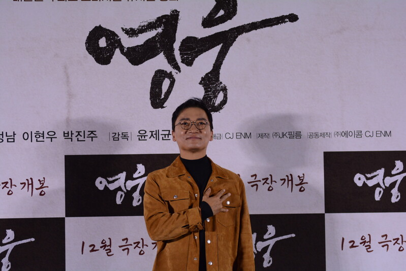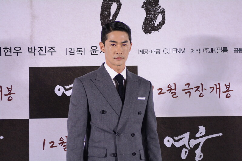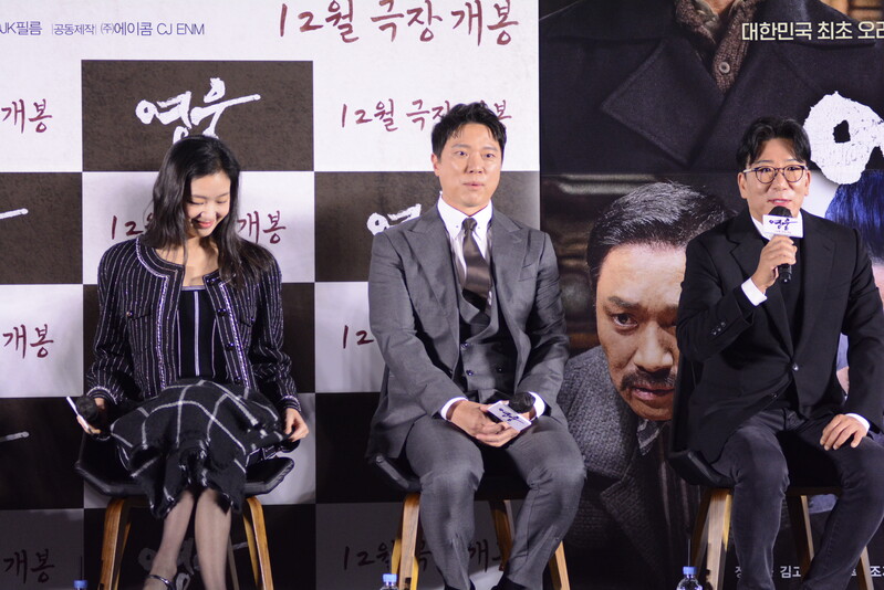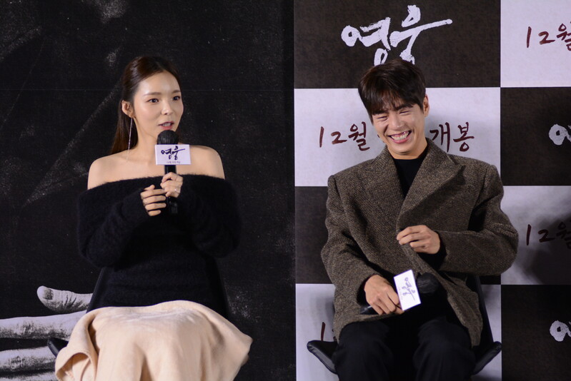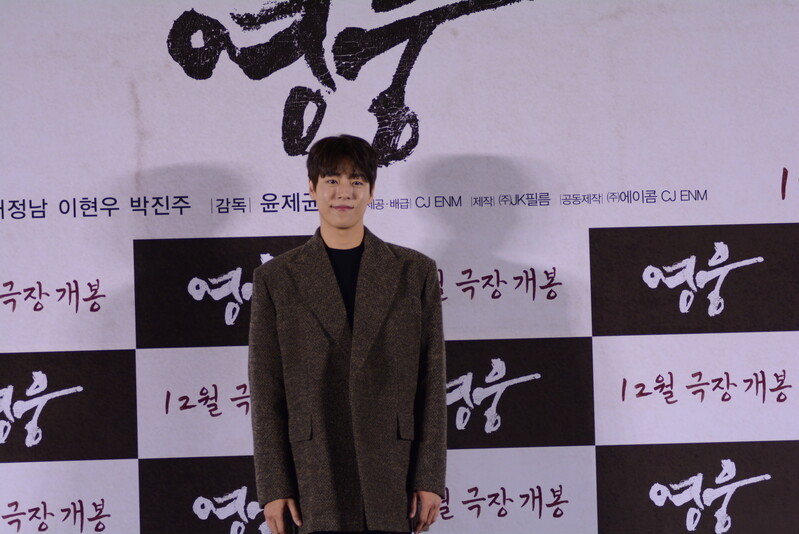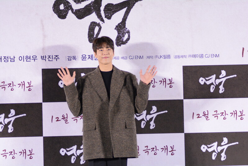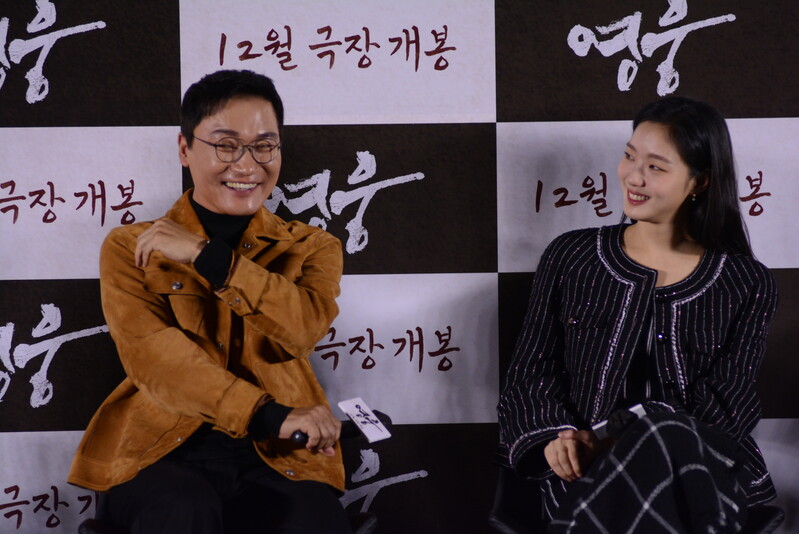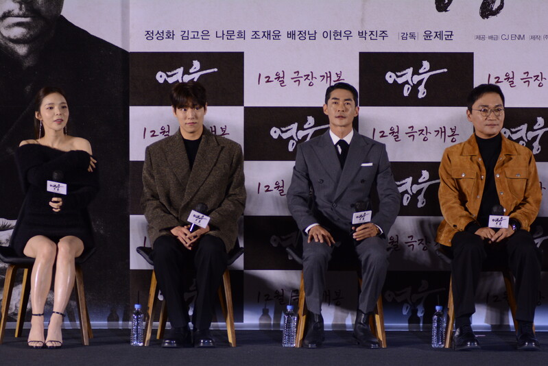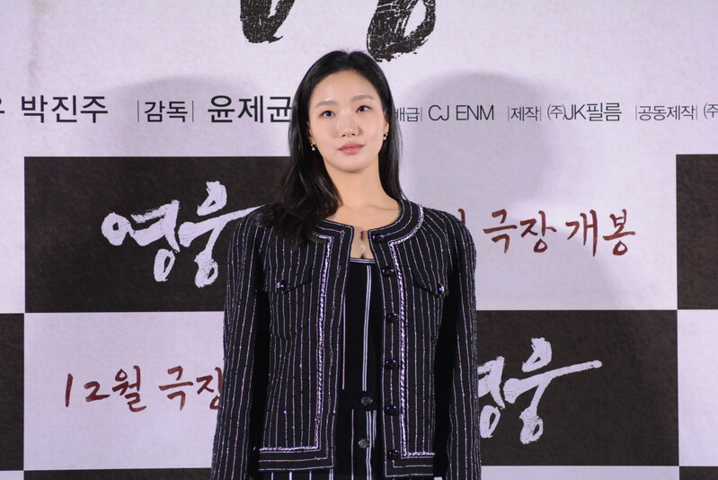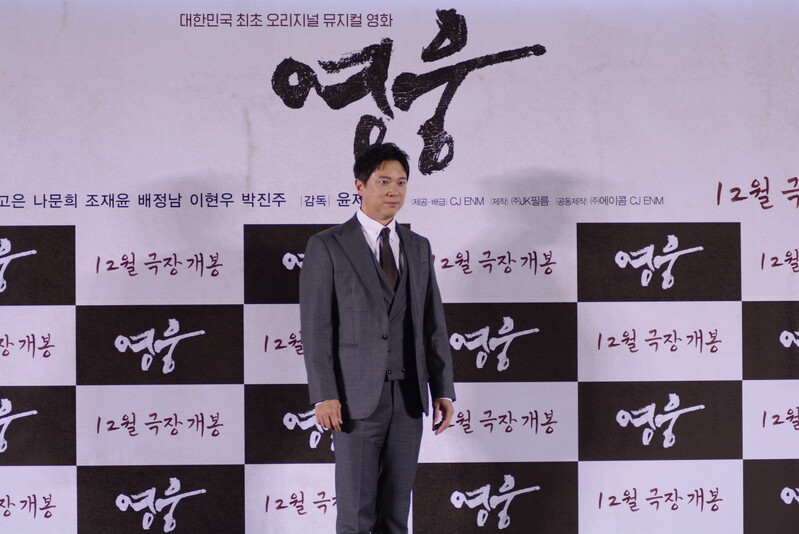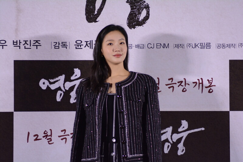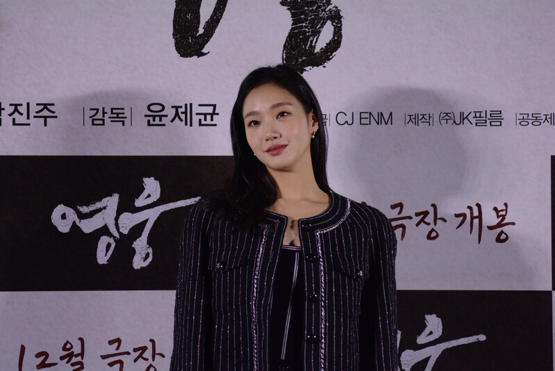 These photos, taken during the press conference of the upcoming South Korean musical drama film "Hero" shows actress Kim Go-eun, Park Jin-ju, actor Jung Sung-hwa, Bae Jung-nam, Jo Jae-yun, and Lee Hyun-woo answering questions and posing for individual photos.