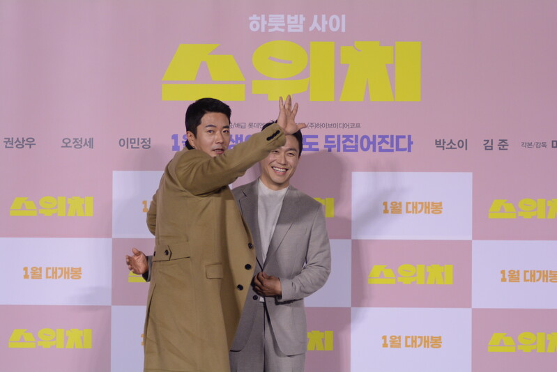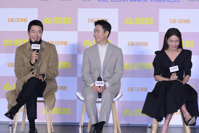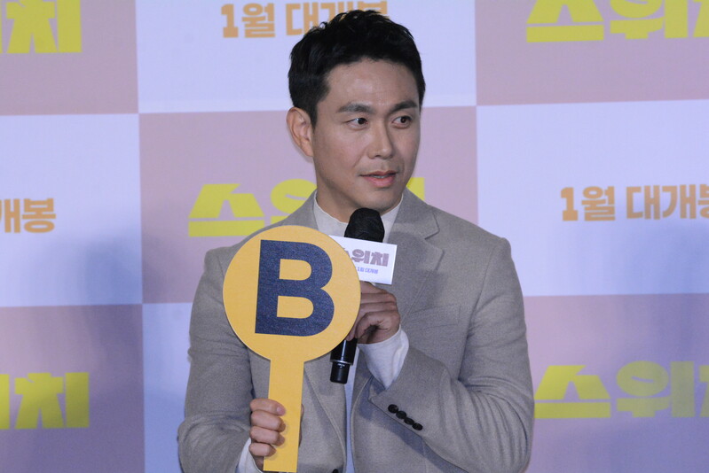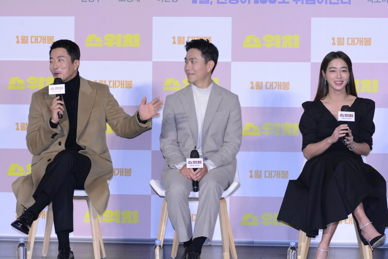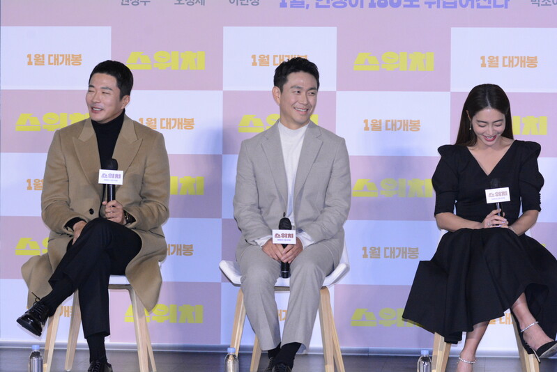 These photos, taken during the press conference of the upcoming South Korean comedy movie "Switch" Show actress Lee Min-jung, actor Kwon Sang-woo, Oh Jung-se and Kim Jun answering questions, and posing for their individuals photos.