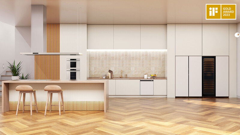 These photos, provided by Samsung Electronics Co. on April 14, 2023, show the tech giant's Bespoke Infinite Line, which won a gold award at the International Forum (iF) Design Award 2023. Samsung grabbed a total of 80 awards at the German international design competition. (PHOTO NOT FOR SALE) (Yonhap)