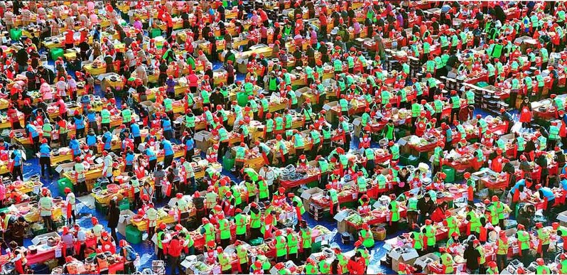 | ▲ 2014 Female Yakult vendors (“Yakult ajummas”) convene in Seoul Square and prepare kimchi to be delivered to low-income households. (Yonhap file photo) |