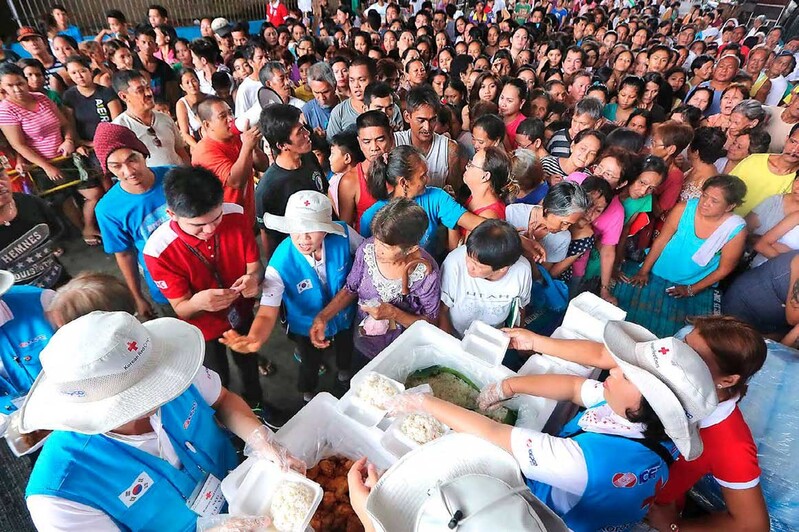 | ▲ 2014 Members of a global relief volunteer organization, consisting of Gyeonggi Province governor and employees of the Korea Electric Power Corp., provide meals and hygiene products to residents in a Manila slum in the Philippines. (Yonhap file photo) |