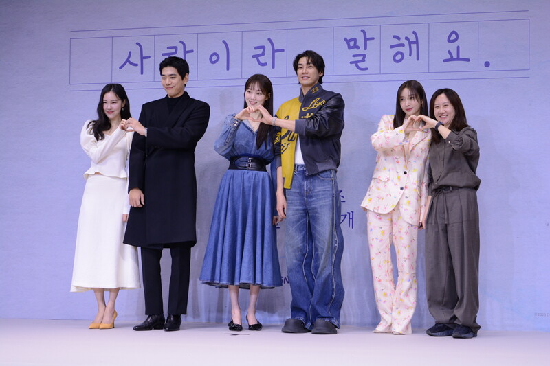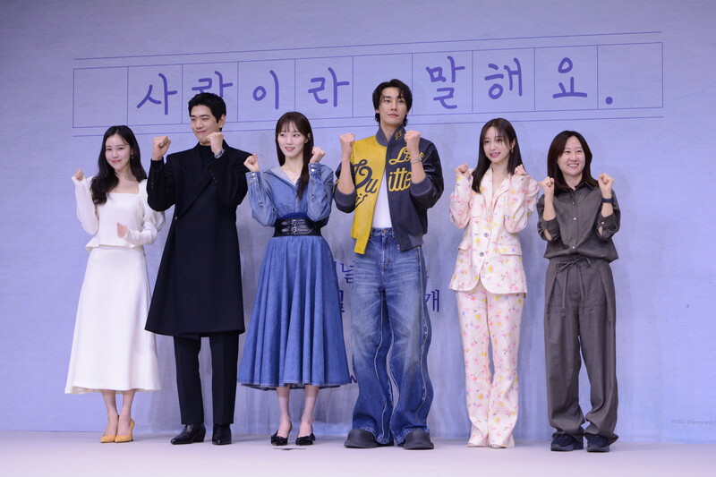These photos, taken during the press conference of the upcoming Disney Plus Original series "Call It Love" show cast members Lee Sung-kyung, Kim Ye-won, Ahn Hee-yeon, Sung Joon, Kim Young-kwang and director Kim Ga-eun posing for individual, group photos while answering to questions throughout the session.
