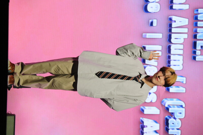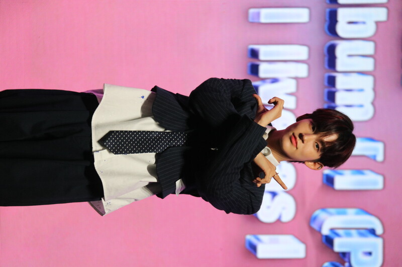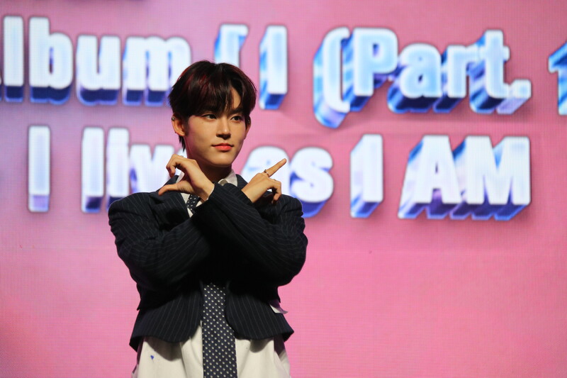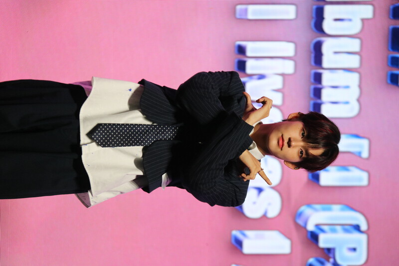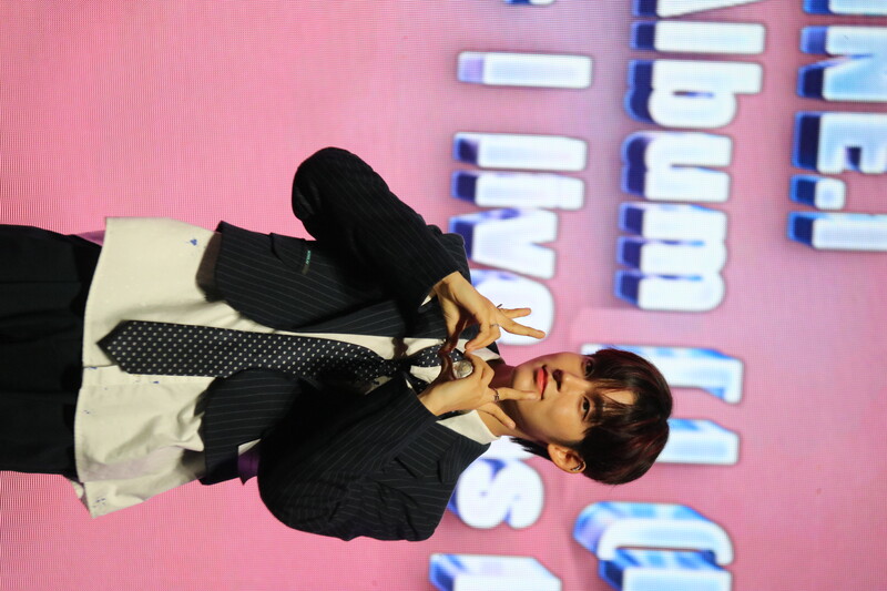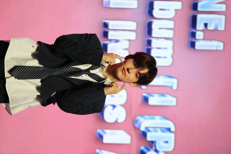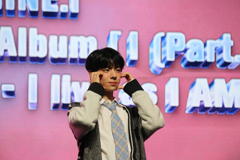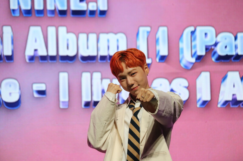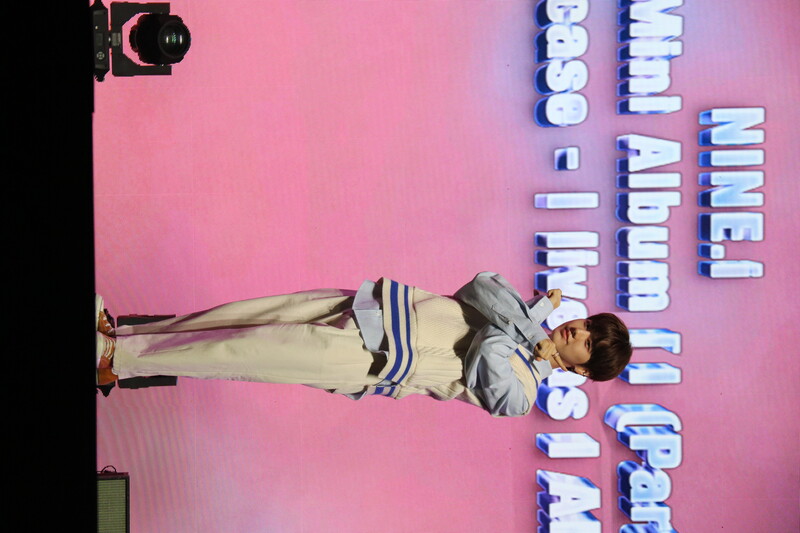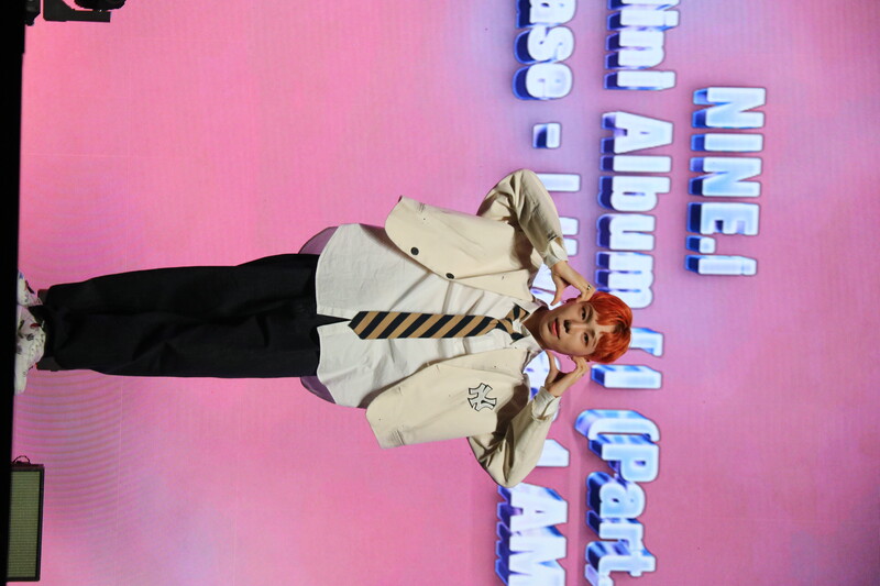 These photos show NINE.i members posing during the media showcase for their second mini album "I Part.1," which took place on Nov. 8.
