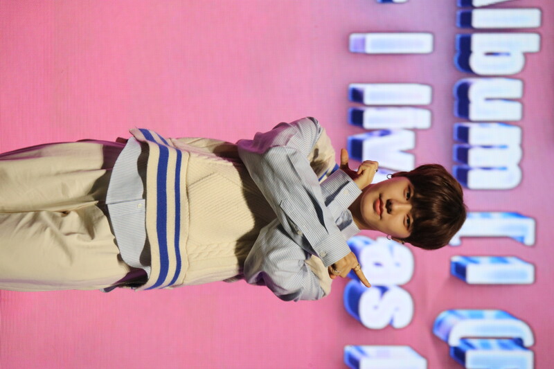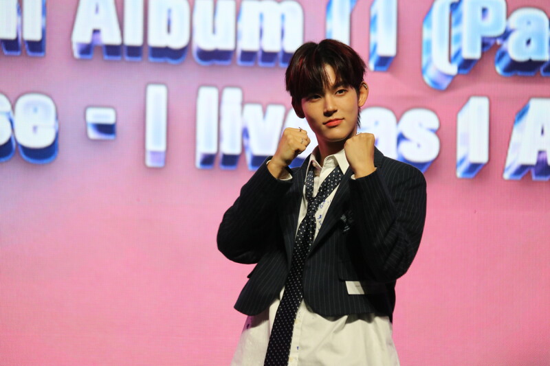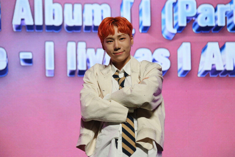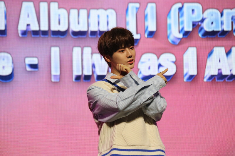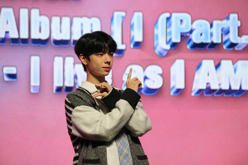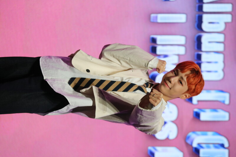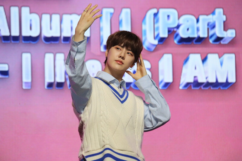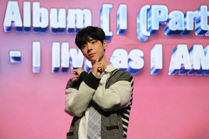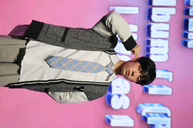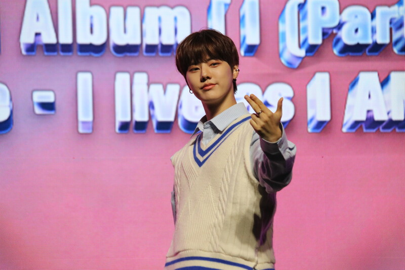 These photos show NINE.i members posing during the media showcase for their second mini album "I Part.1," which took place on Nov. 8.
