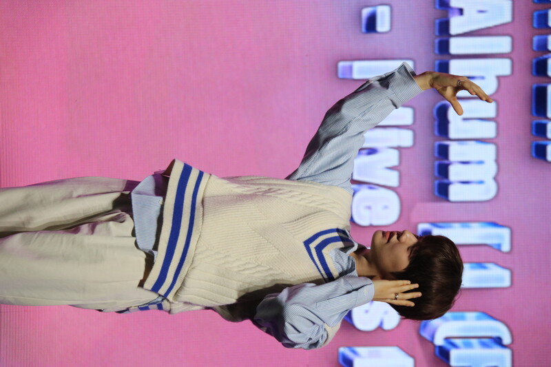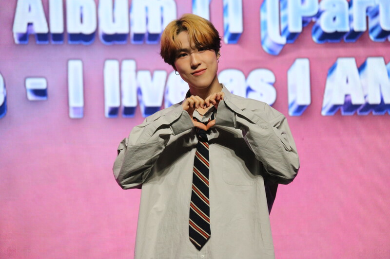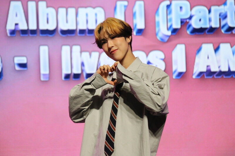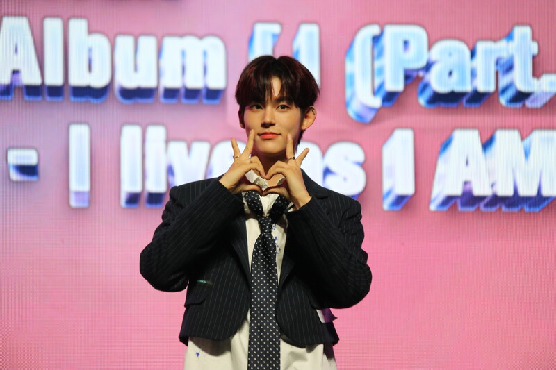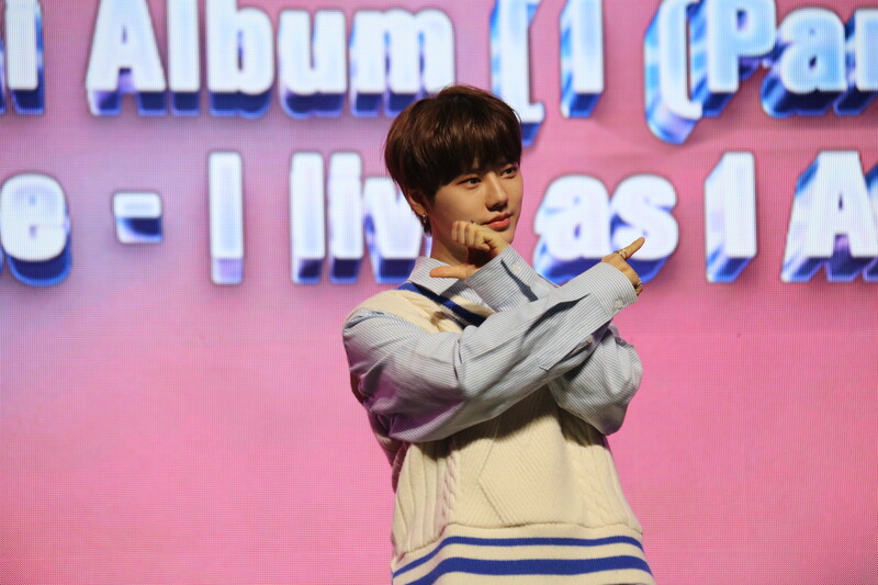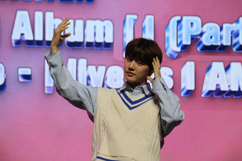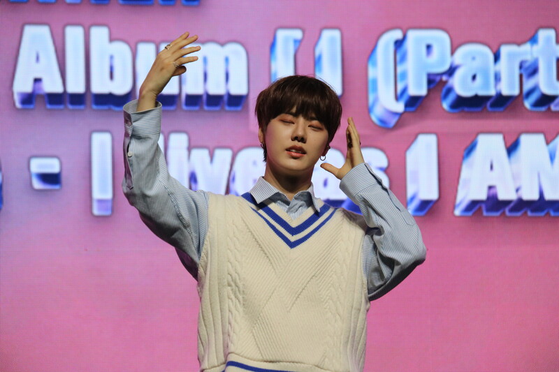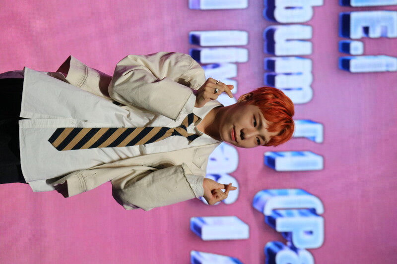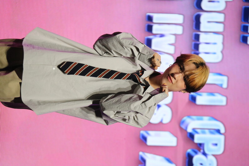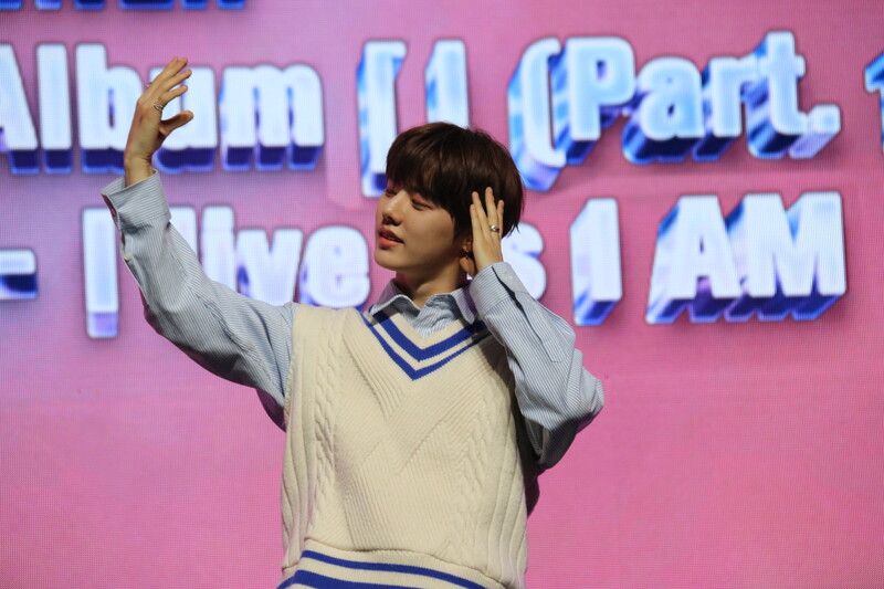 These photos show NINE.i members posing during the media showcase for their second mini album "I Part.1," which took place on Nov. 8.