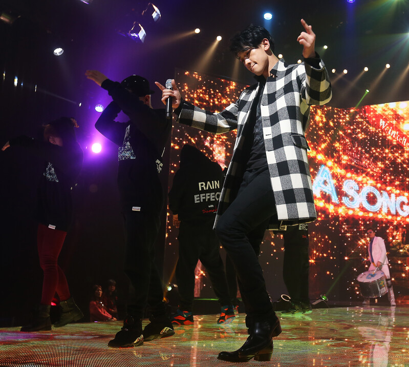 Singer Rain rehearses for the recording of “Rain Comeback Special -- Rain Effect” at the CJ E&M Center in Sangam-dong, northwestern Seoul, on Jan. 8, 2014. (Yonhap)