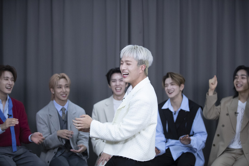 These photos taken during the interview conducted with K-pop boy group TrendZ show members engaging in the session.