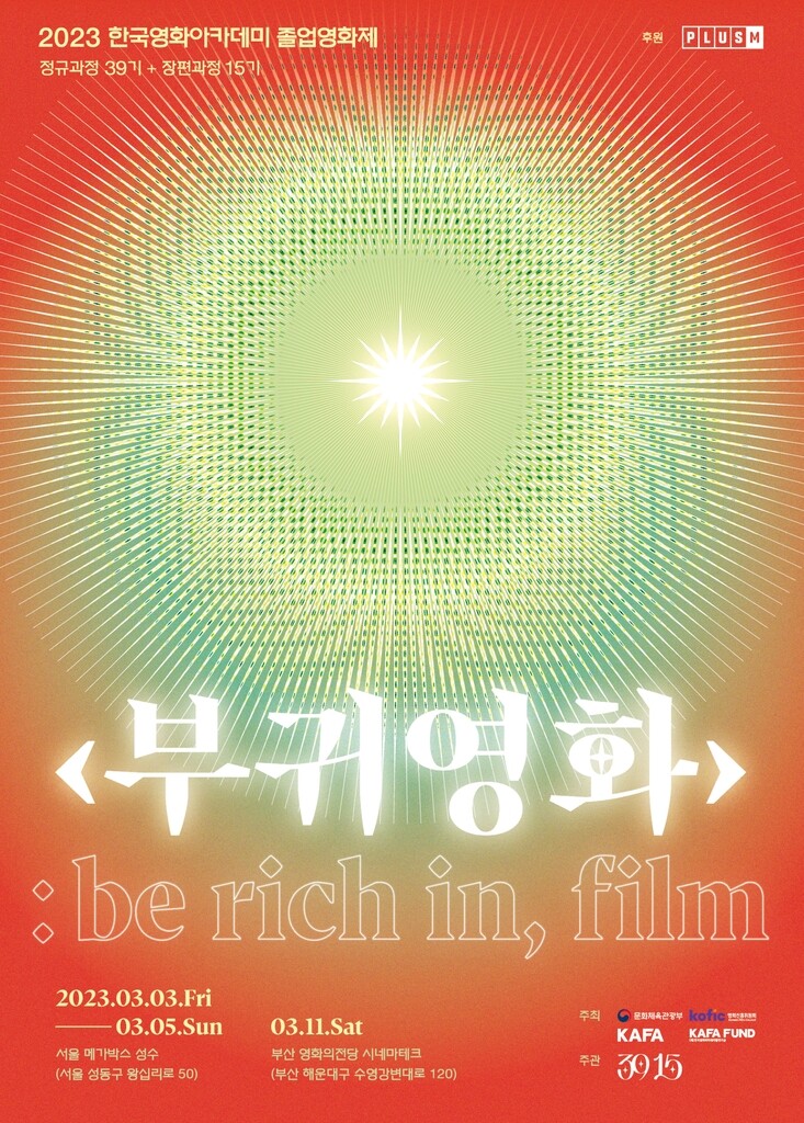 During the festivals, a total of 30 films, including those that were produced as a part of the KAFA regular course (39th) and feature-length course (15th), will be screened under the slogan “Be Rich in, Film.” The festival in Seoul will be held at Megabox Seongsu from Friday to Sunday, which will be followed by the festival in Busan at the Cinema Tech of the Busan Cinema Center on Mar. 11.