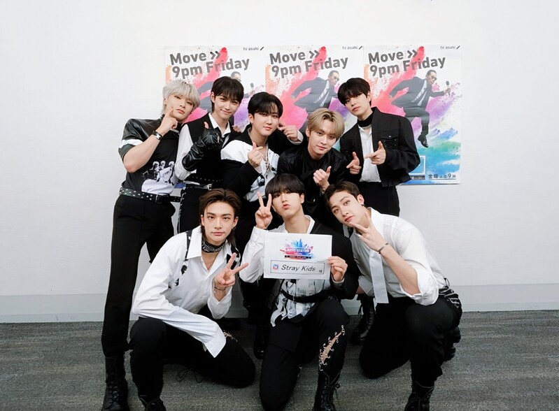 These photos provided by JYP Entertainment shows, Stray Kids and NiziU at Japanese music program "Music Station" by TV Asahi.