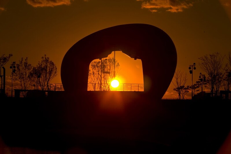 | ▲This photo, provided by Seo-gu, shows the sunset seen through the bellshaped structure of Jeongseojin. (PHOTO NOT FOR SALE) (Yonhap) |