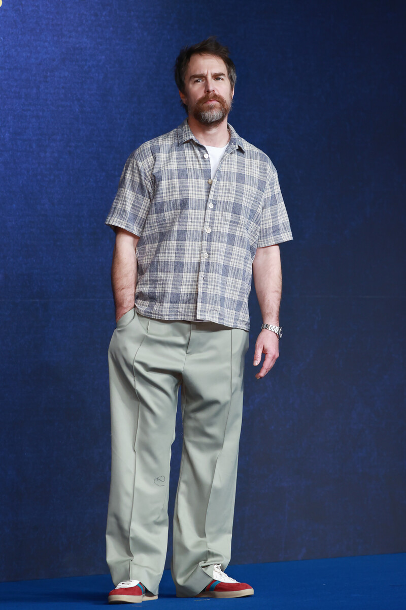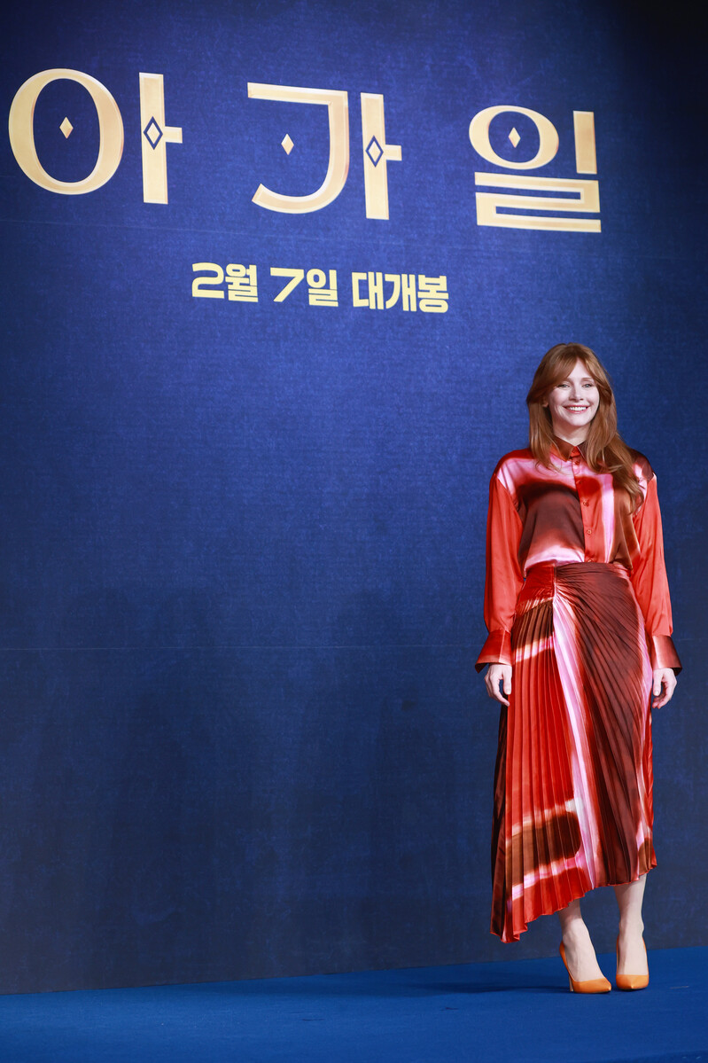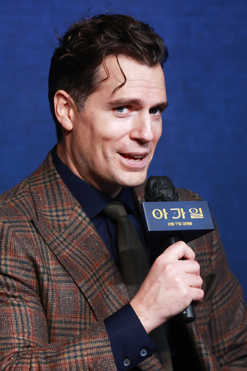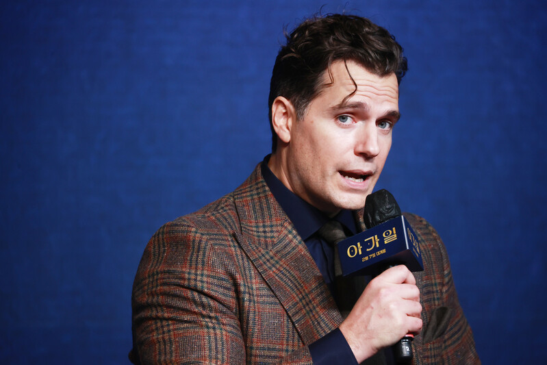 The stars of the new hollywood movie "Argylle" Sam Rockwell, Bryce Dallas and Henry Cavill posed for a photo during a publicity event in Seoul on Jan. 18, 2024. The movie will be released in South Korea on Feb. 7. (Yonhap)