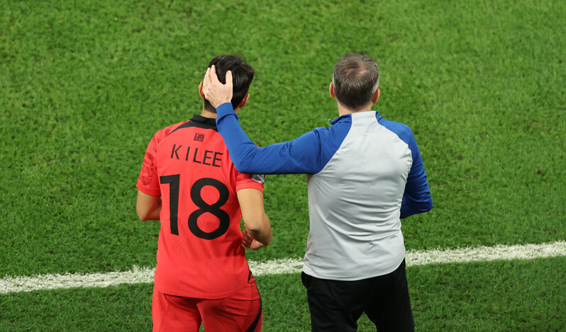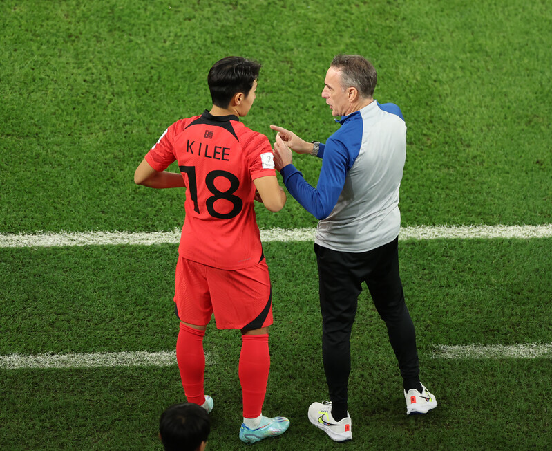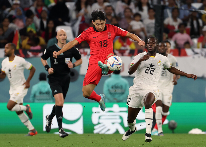 These photos show South Korea national team player Lee Kang-in at the 2022 World Cup match against Ghana on November 28. Lee Kang-in joined the match on the second half and assisted Cho Gue-sung to score the first goal.