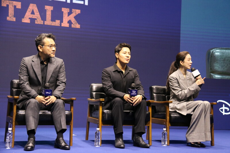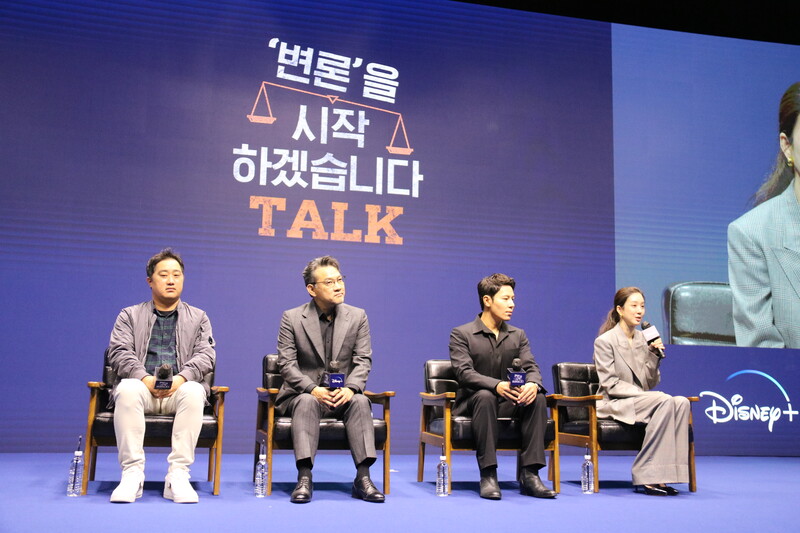 These photos show the press conference scene for the new Disney Plus original series "May It Please the Court" which was held on Wednesday. The cast members are Jung Ryeo-Won, Lee Kyu-Hyung, and Jung Jin-Young, and it was directed by Kang Min-Ku. The series will be released on September 21, at 4 p.m. (KST).
