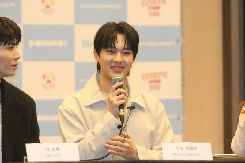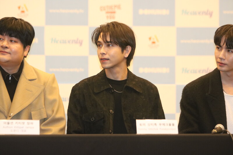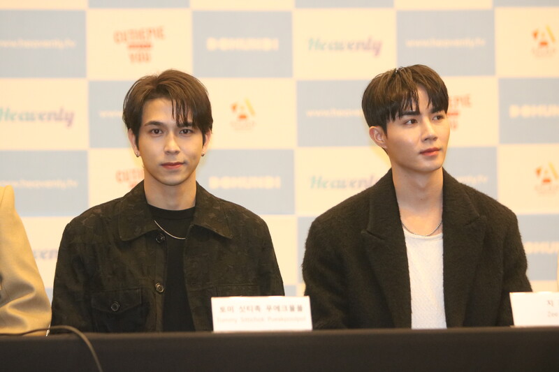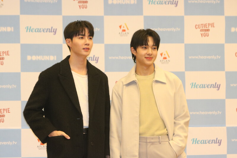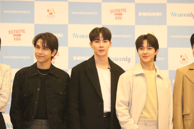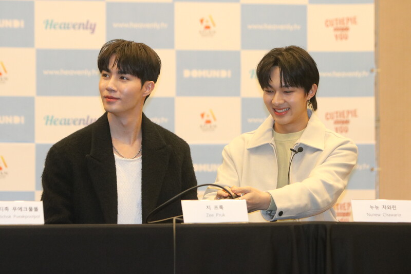 These are the photos from the press conference of global BL contents platform Heavenly and Thailand BL production company Domundi. Thai actors Zee Pruk, Nunew Chawarin, who are cast of BL drama Cutie Pie 2 You, and Tommy Sittichok Pueakpoolpol have visited Korea to meet global fans. This press conference was held to promote BL contents platforms and its drama.