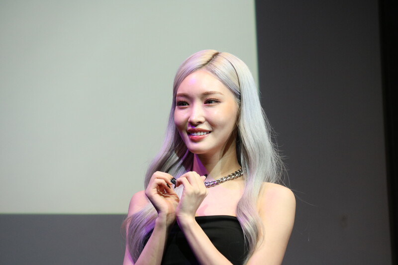 These photos, show ChungHa at the press conference for her 2nd full album “Bare&Rare Pt.1,” which will be out on July 11 at 6 p.m. (K-Odyssey)