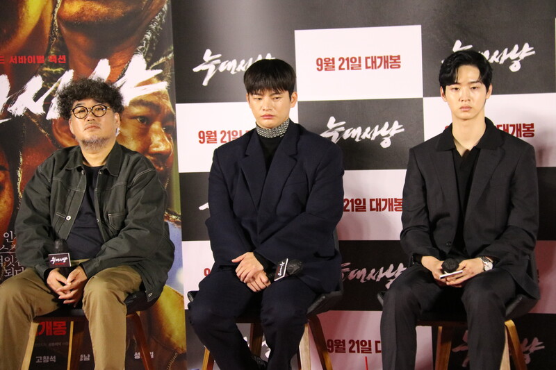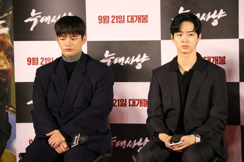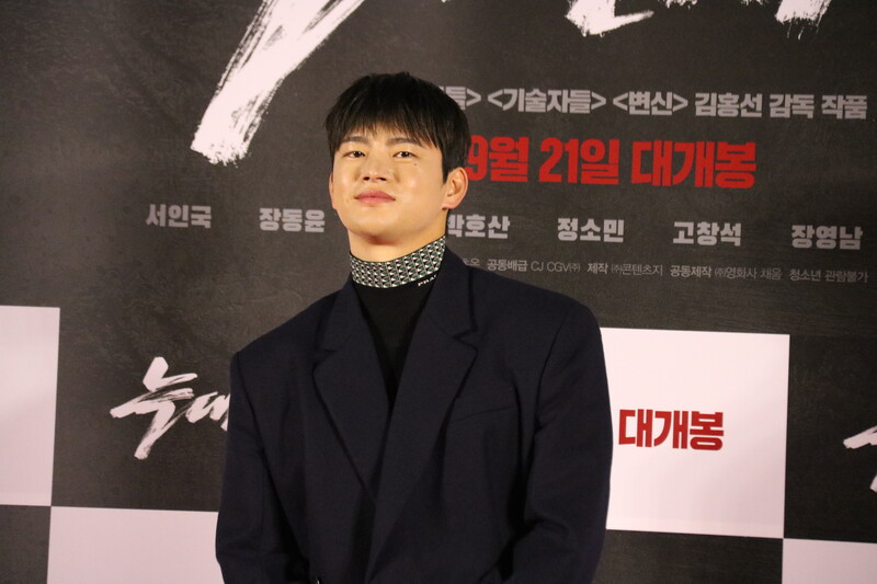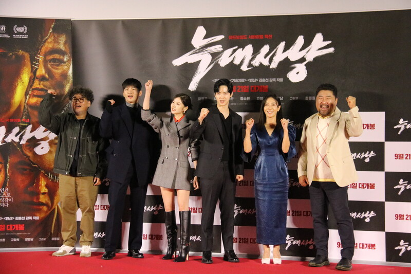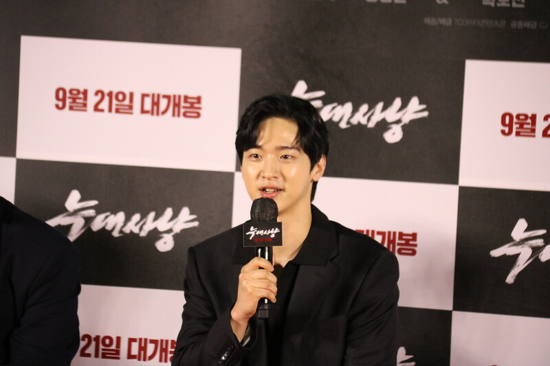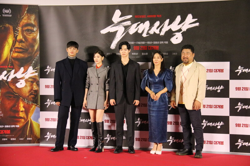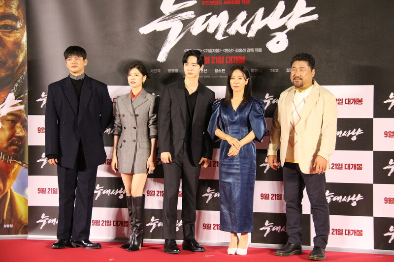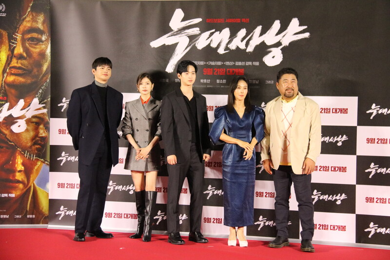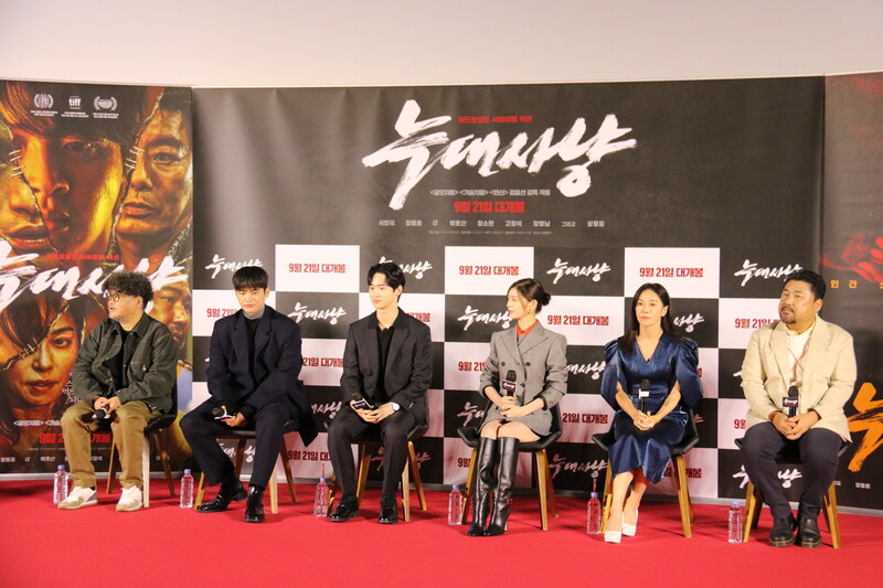 These photos show the press conference scene for the movie "Project Wolf Hunting," held in Yongsan CGV on Monday. The cast members are Seo In-guk, Jang Dong-yoon, Jung So-min, Ko Chang-seok and Jang Young-nam, and it was directed by Kim Hong-sun. The movie will be released on September 21.