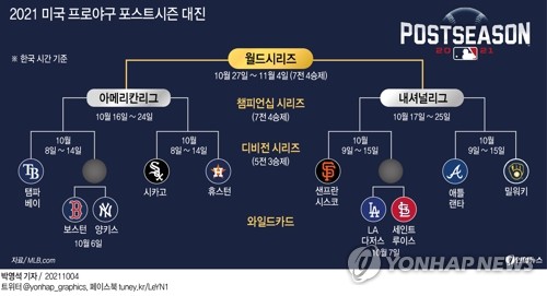 (서울=연합뉴스) 박영석 기자 = 2021년 미국프로야구(MLB) 포스트시즌(PS) 대진표가 정규리그 마지막 날인 4일(한국시간)에야 완성됐다.