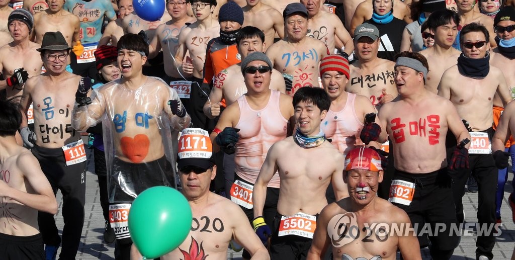 (대전=연합뉴스) 이재림 기자 = 많은 이들의 관심과 참여 속에 매년 새해 첫날을 기념해 열렸던 대전 맨몸 마라톤이 올해는 '나 홀로 행사'로 펼쳐졌다.