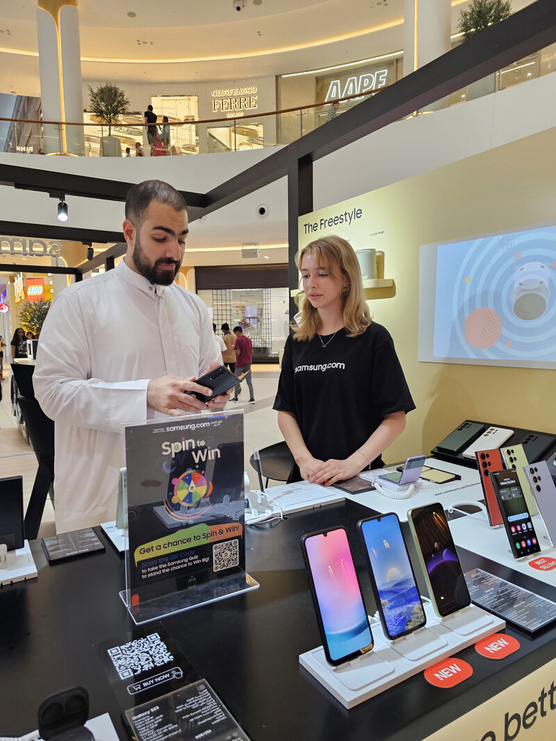 These photos provided by Samsung Electronics on April 23, 2023, show the company's pop-up store that opened in Dubai Mall, a shopping mall in the namesake city. (PHOTO NOT FOR SALE) (Yonhap)(END)