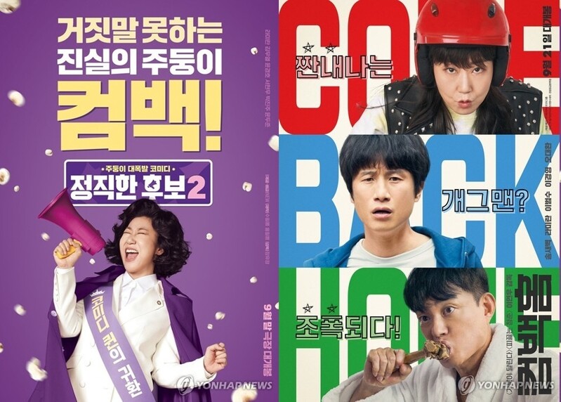 But there are cases where movies of same genre starring same actor release one after another. Ra Mi-ran takes the leading role in both "Honest Candidate 2," to be open on Sept. 28, and "Come Back Home," releasing Oct. 5