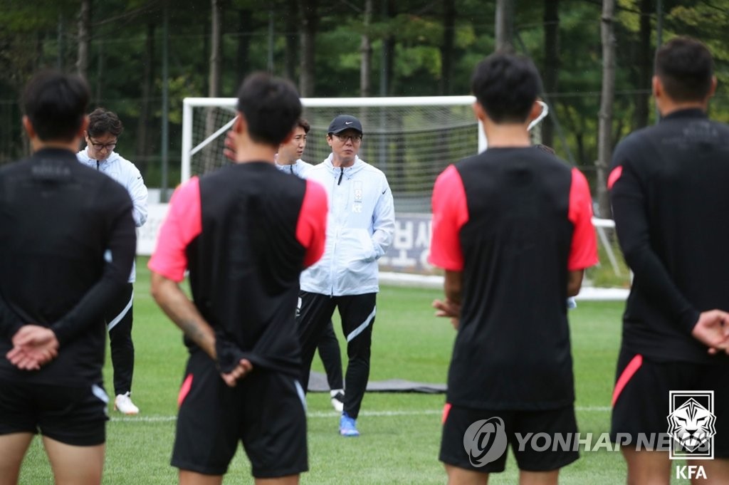 | ▲ 2022 AFC 남자 U-23 아시안컵 예선 대비 1차 소집훈련 (서울=연합뉴스) 지난달 27일 경기 파주트레이닝센터(NFC)에서 열린 2022 AFC 남자 U-23 아시안컵 예선 대비 1차 소집훈련에서 황선홍 감독이 선수들에게 작전을 설명하고 있다. 2021.9.27 [대한축구협회 제공. 재판매 및 DB 금지] photo@yna.co.kr |