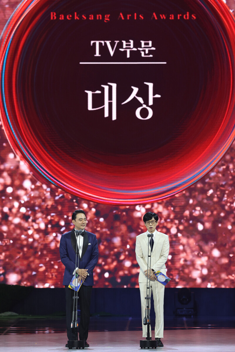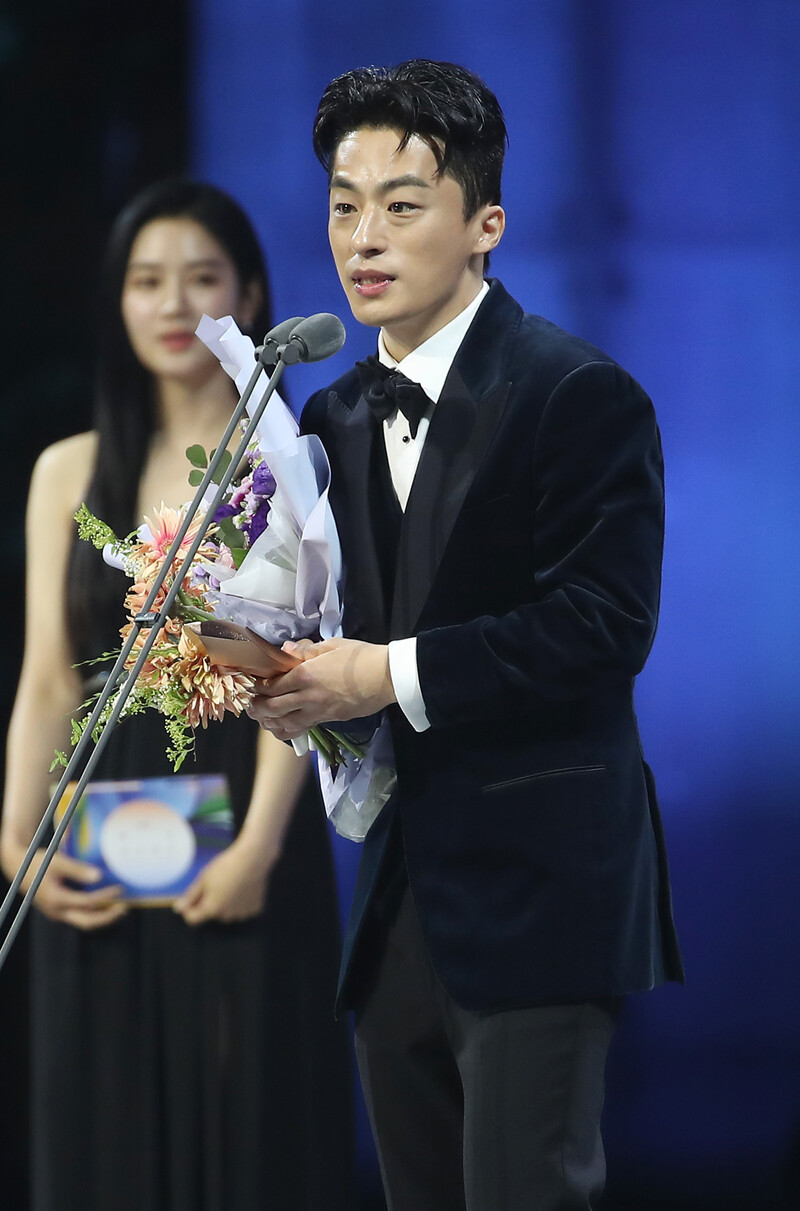 These photos, provided by Baeksang Arts Awards, show S. Korean actors receiving awards at the 58th Baeksang Arts Awards held at the KINTEX convention center in Goyang, Gyeonggi Province, on May 6, 2022.