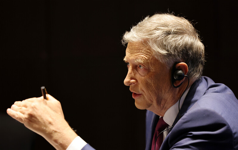 Microsoft Corp. co-founder Bill Gates speaks during an interview with Yonhap News Agency in Seoul on Aug. 17, 2022. (Yonhap)