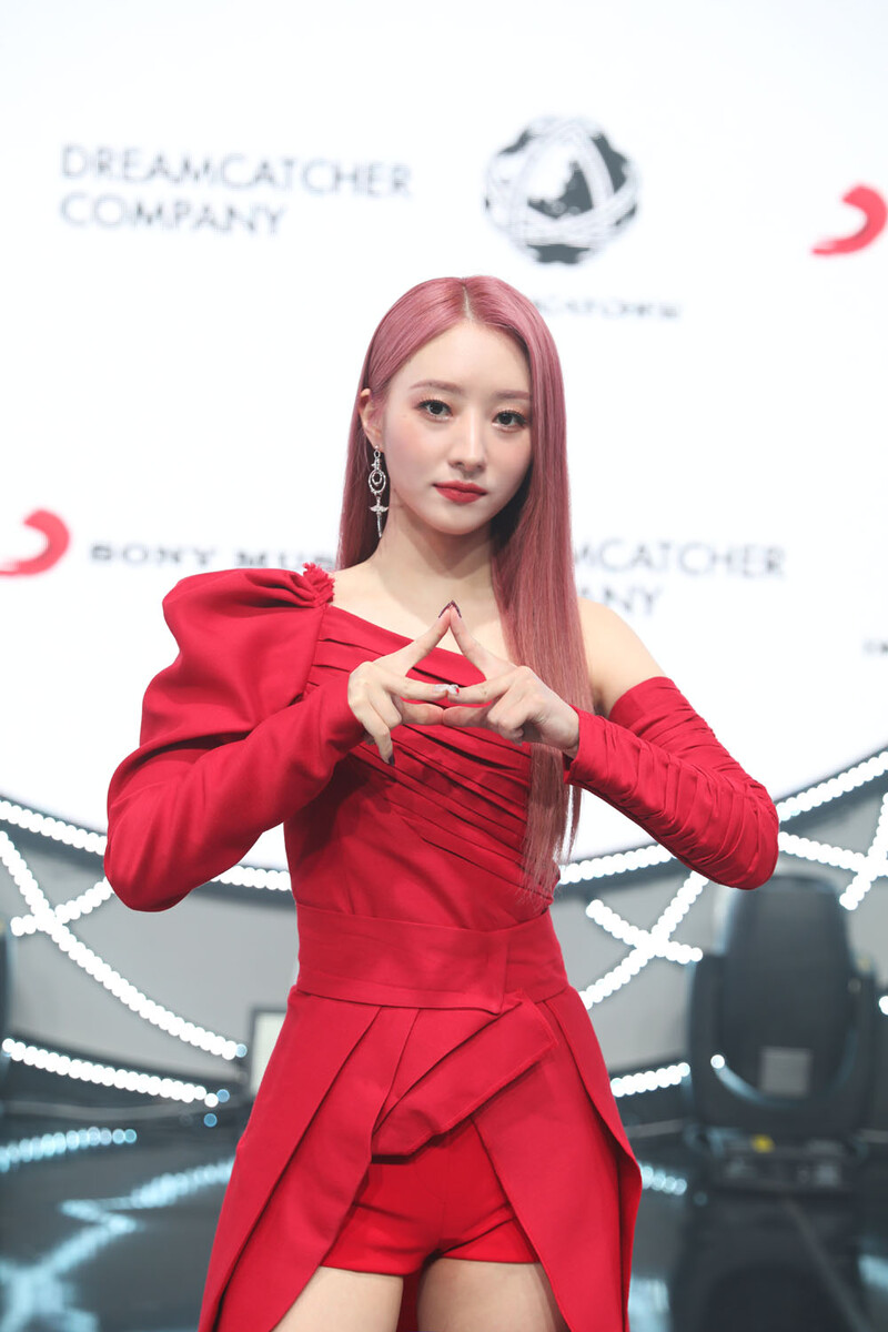 These photos, provided by Dreamcatcher Company, show images from Dreamcatcher's comeback showcase, for the upcoming second album "Apocalypse : Save us" which will drop today at 6 p.m.