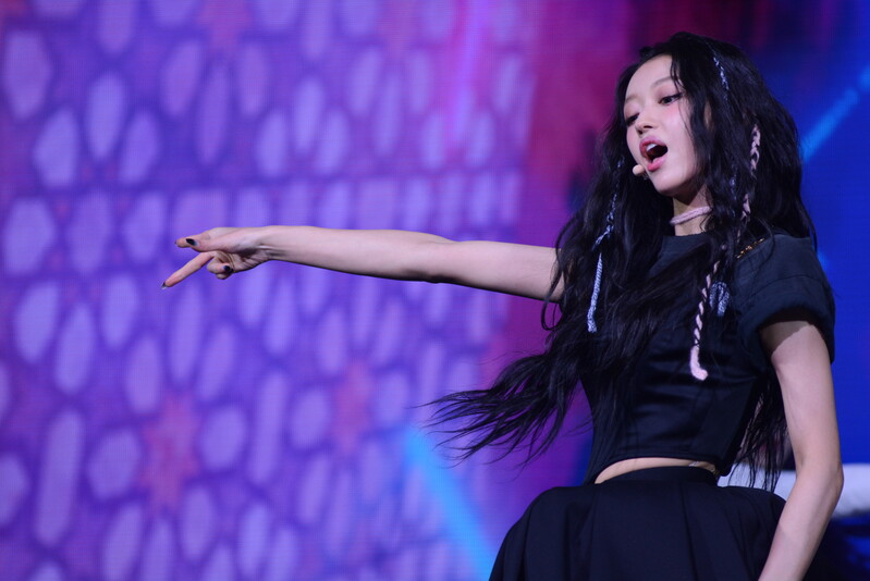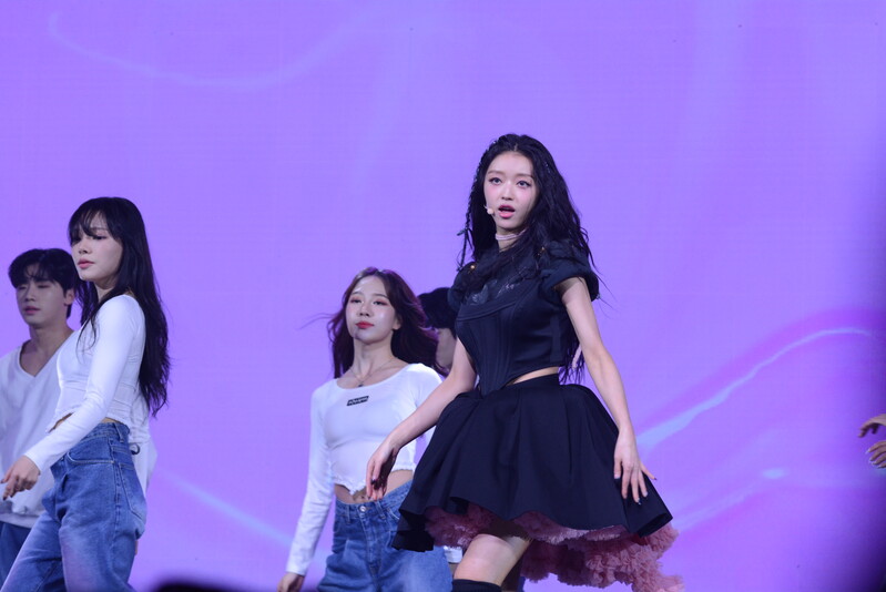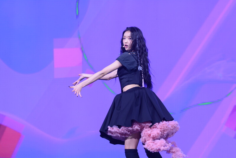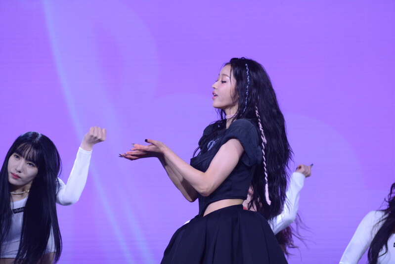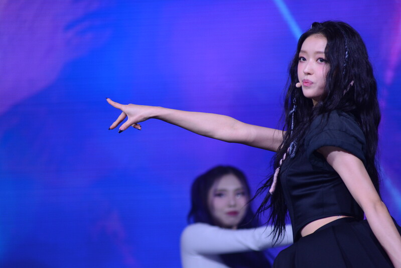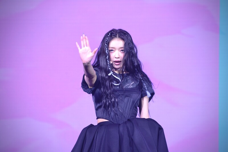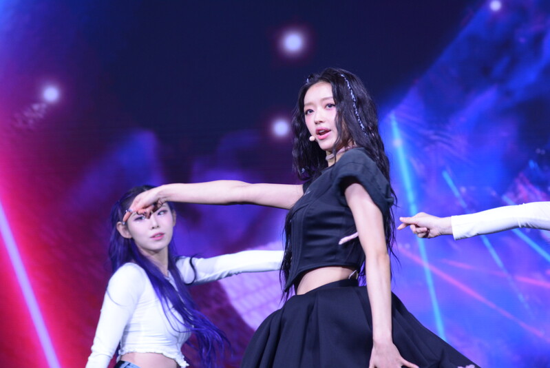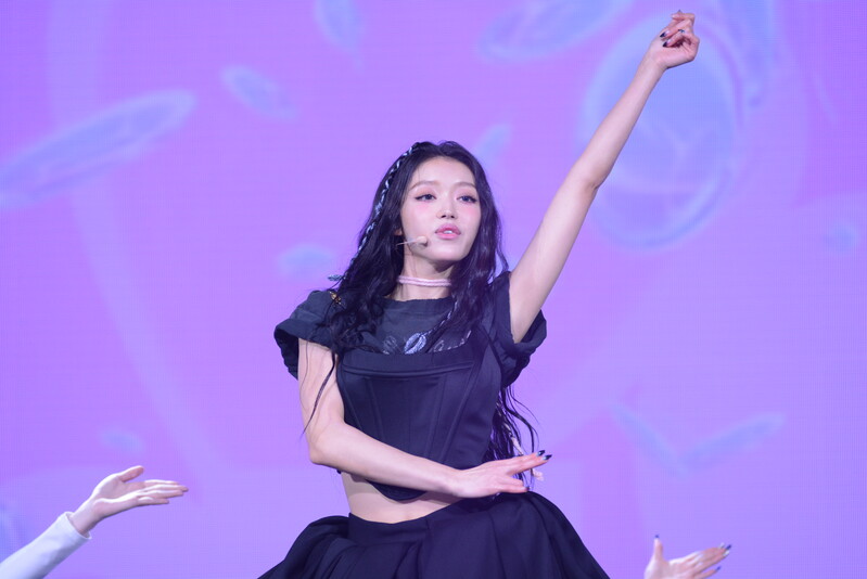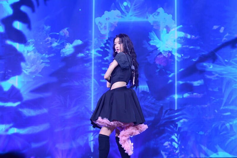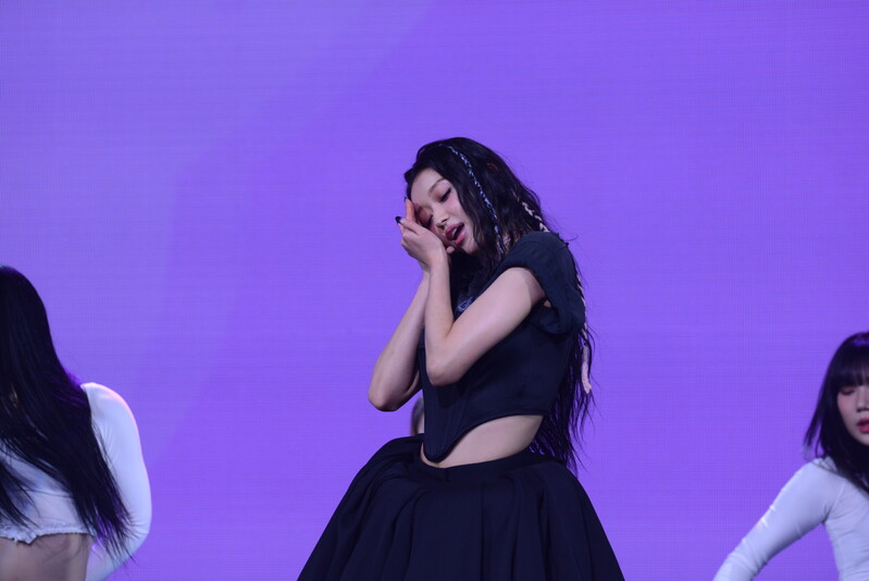 These photos, taken during the media showcase for K-Pop girl group Oh My Girl's YooA's second solo mini album "Selfish" shows, YooA performing her title track "Selfish" and one of the tracks included within her album "Lay Low."
