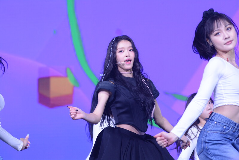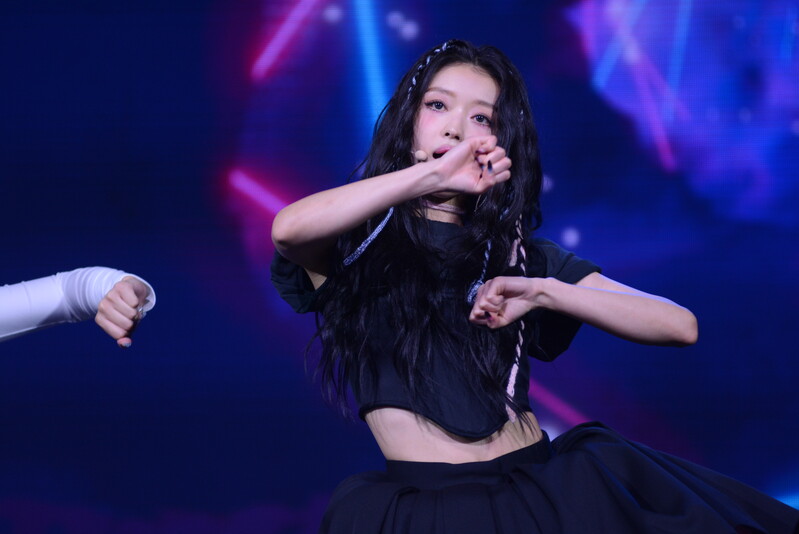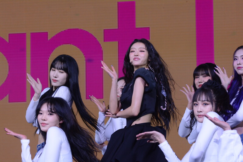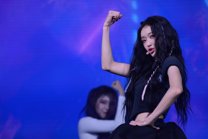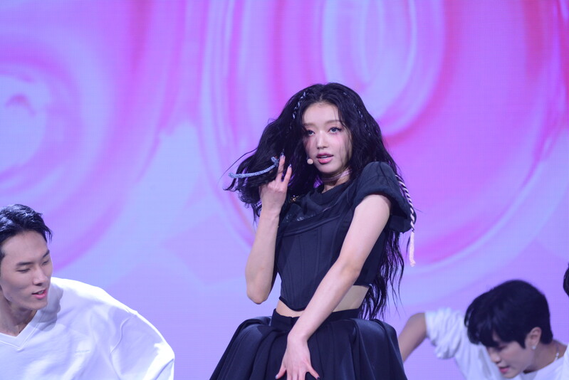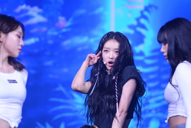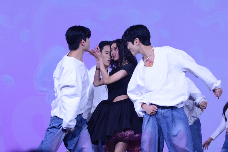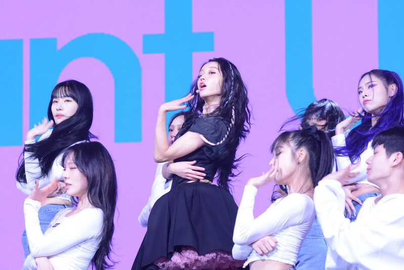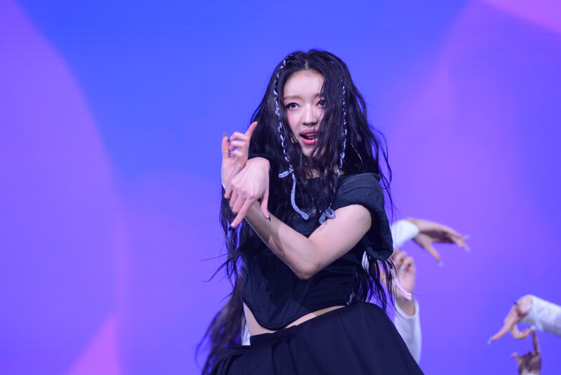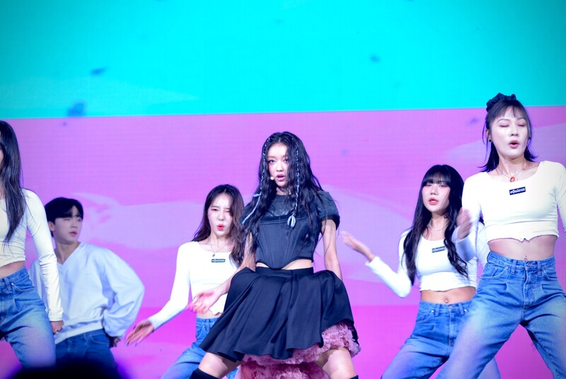 These photos, taken during the media showcase for K-Pop girl group Oh My Girl's YooA's second solo mini album "Selfish" shows, YooA performing her title track "Selfish" and one of the tracks included within her album "Lay Low."